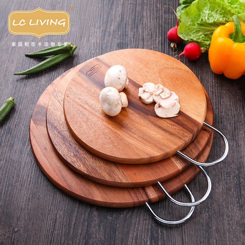 泰国进口lcliving相思木切菜板圆形砧板抗菌防霉带提手双面辅食板