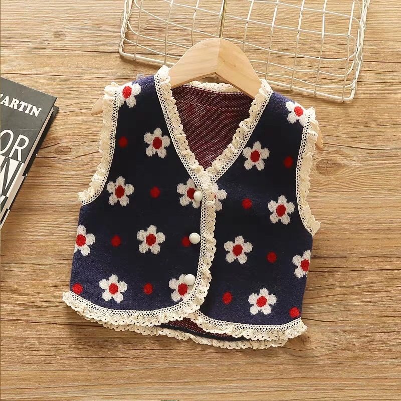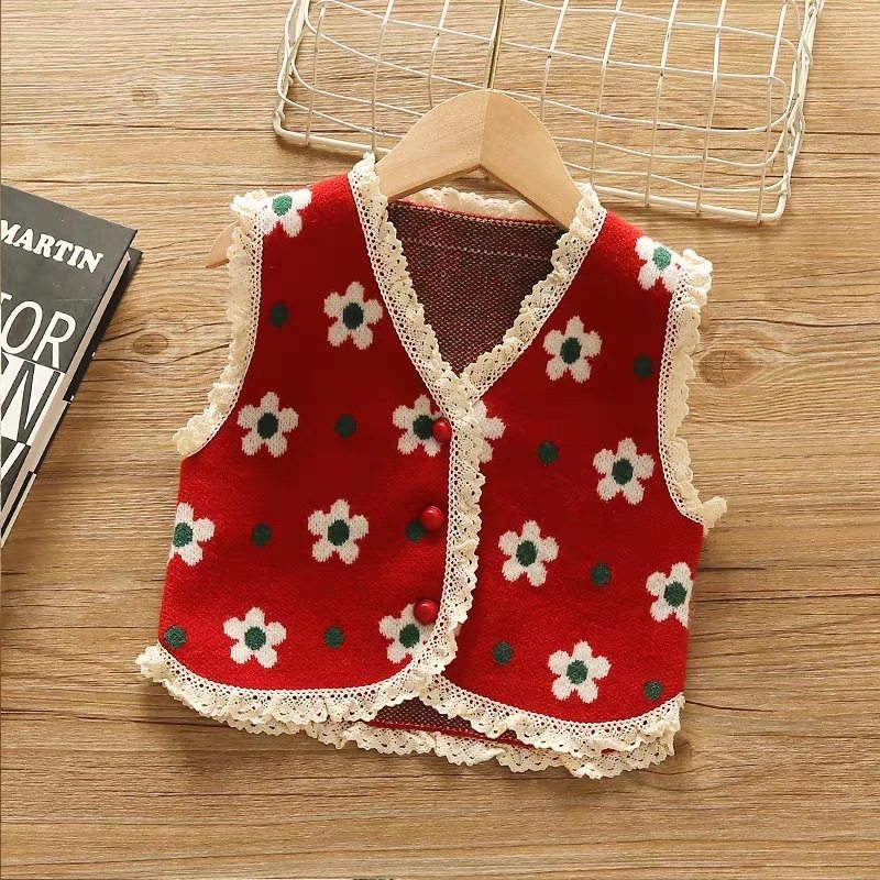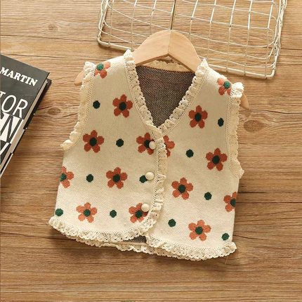 女童针织开衫毛衣马甲小童女宝宝春秋装婴幼儿童外套背心毛线马夹