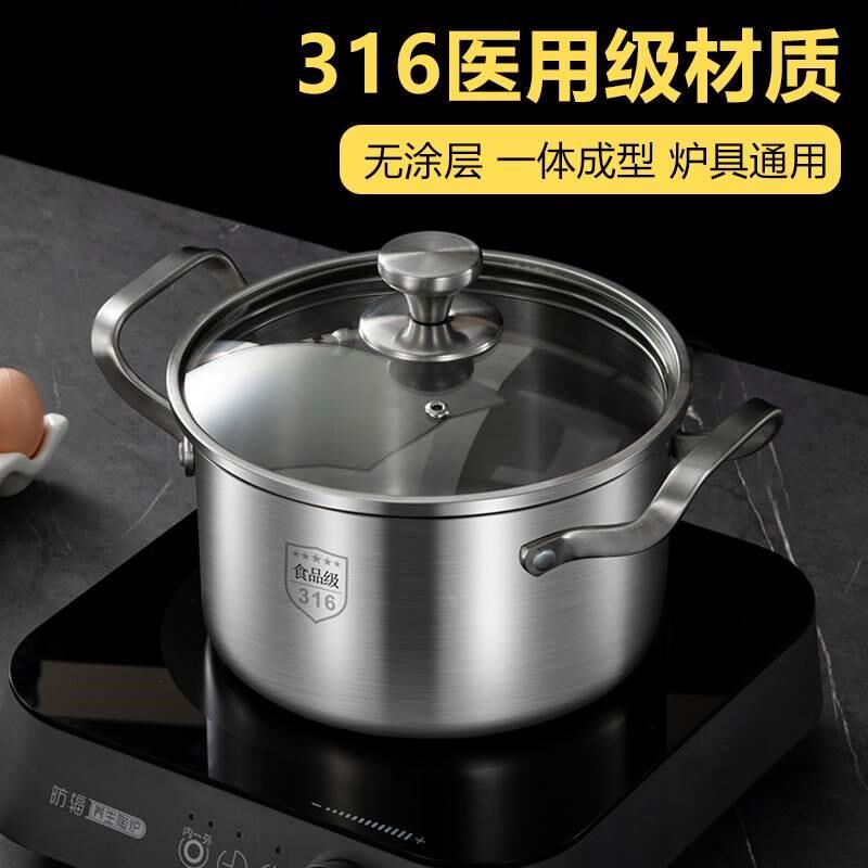 316不锈钢汤锅家用特厚电磁炉B煲汤煮粥锅奶瓶消毒锅燃气炉双耳锅