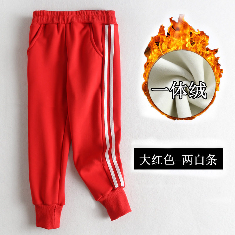 一件男童裤女童裤中大童儿童加绒加厚纯棉校裤红色深蓝色
