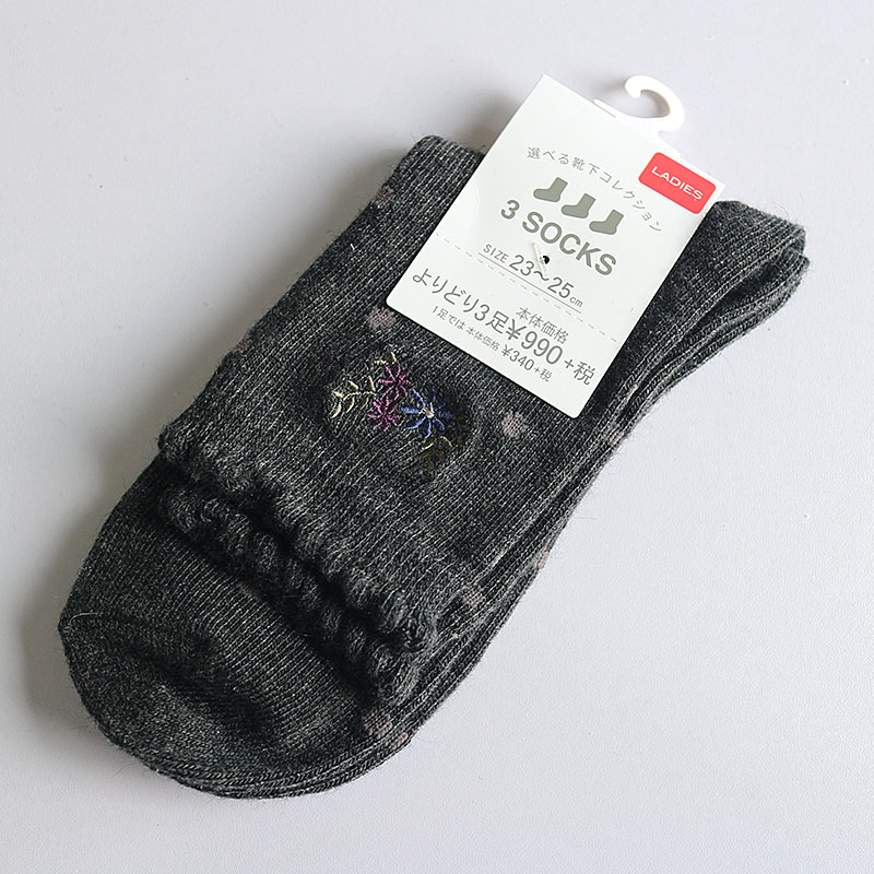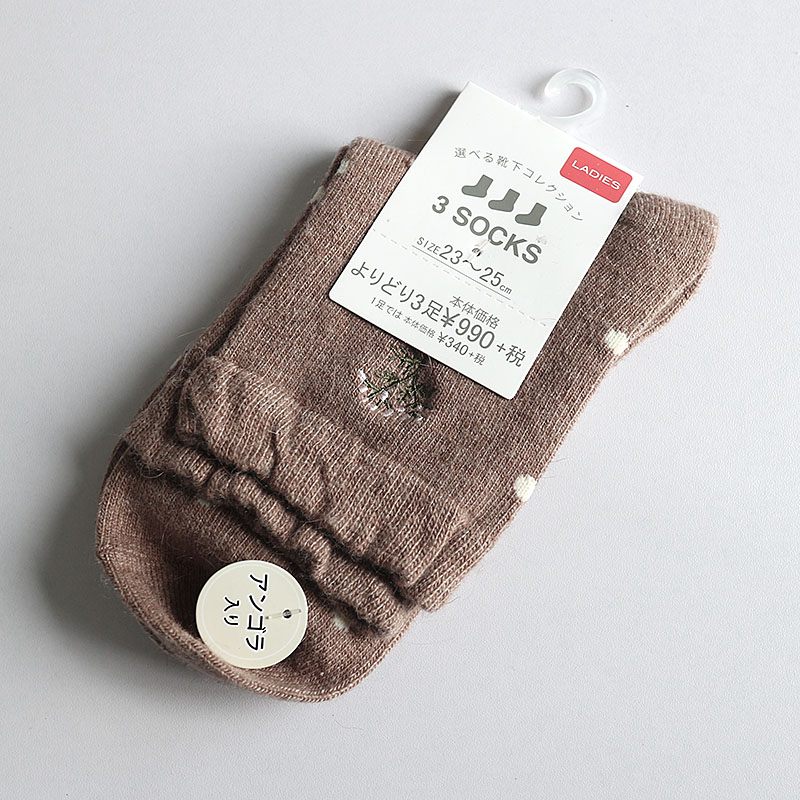 外贸日单女士秋冬季保暖毛袜 刺绣小花水玉装饰舒适中筒女袜