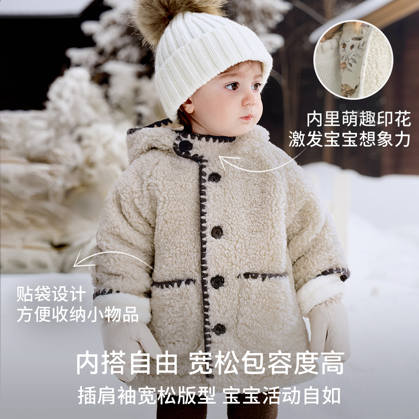 嫚熙童装儿童羊羔绒加厚男女童外套宝宝冬季夹棉保暖中长款棉服
