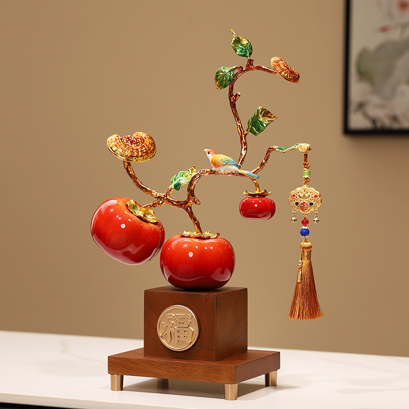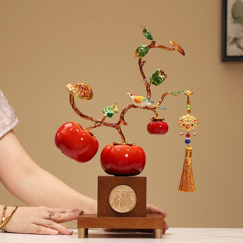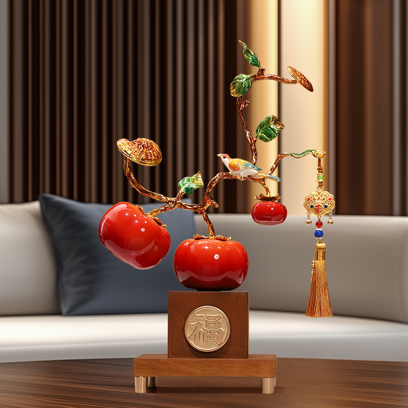 新中式柿柿如意陶瓷摆件福柿报喜客厅电视酒柜家居装饰品乔迁礼物