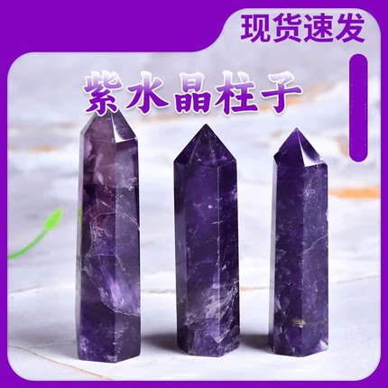 天然水晶紫水晶柱摆件原石打磨