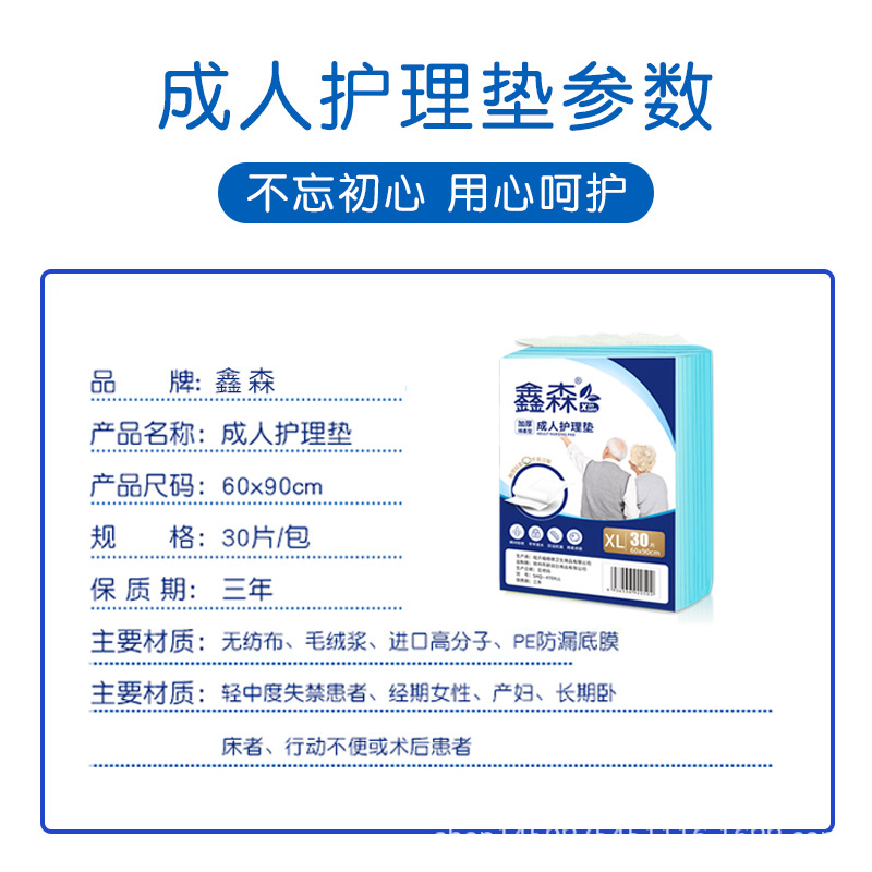 鑫森60X90成人护理垫绵柔老人尿不湿30片装干爽隔尿垫产妇护垫