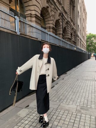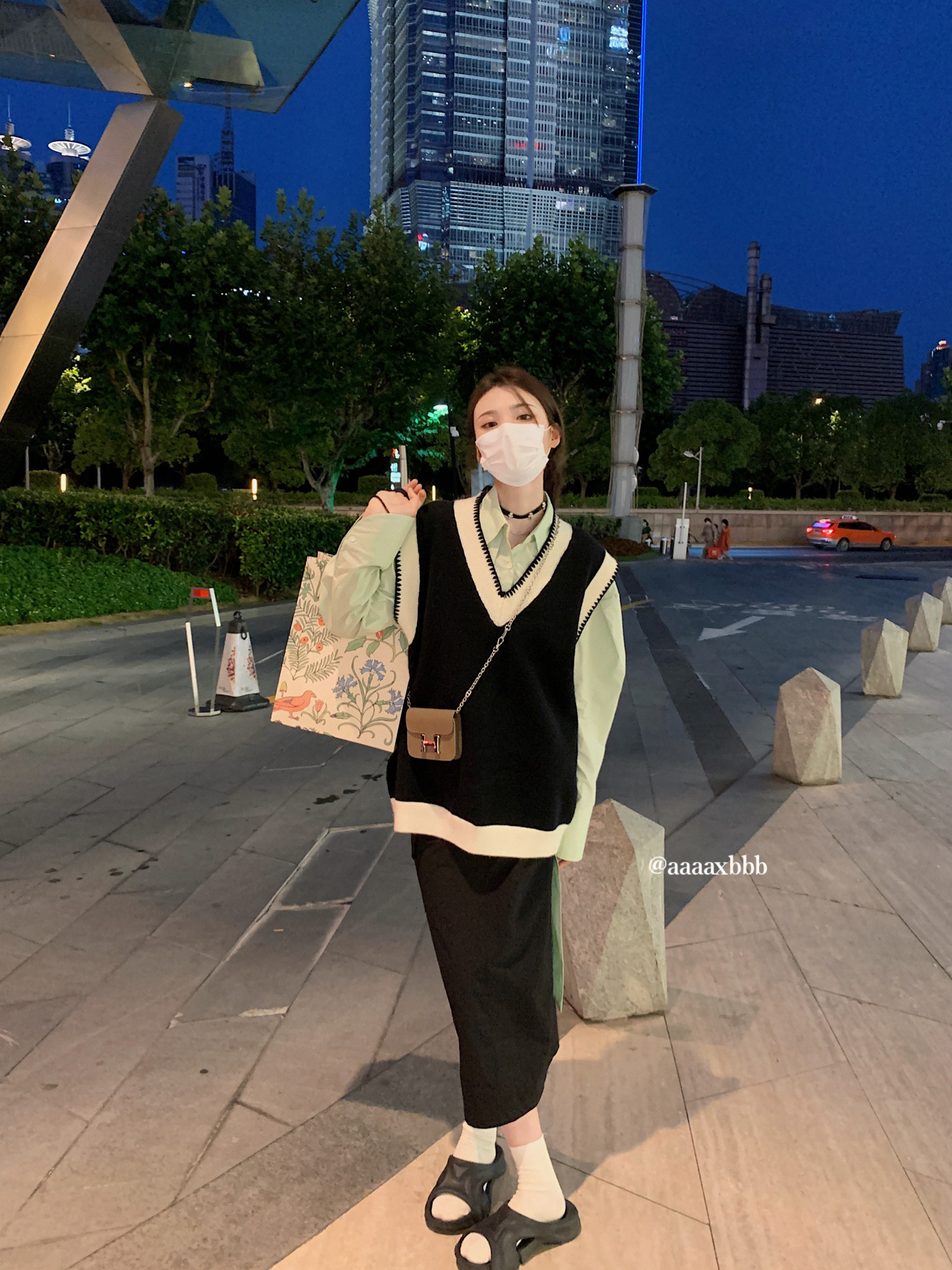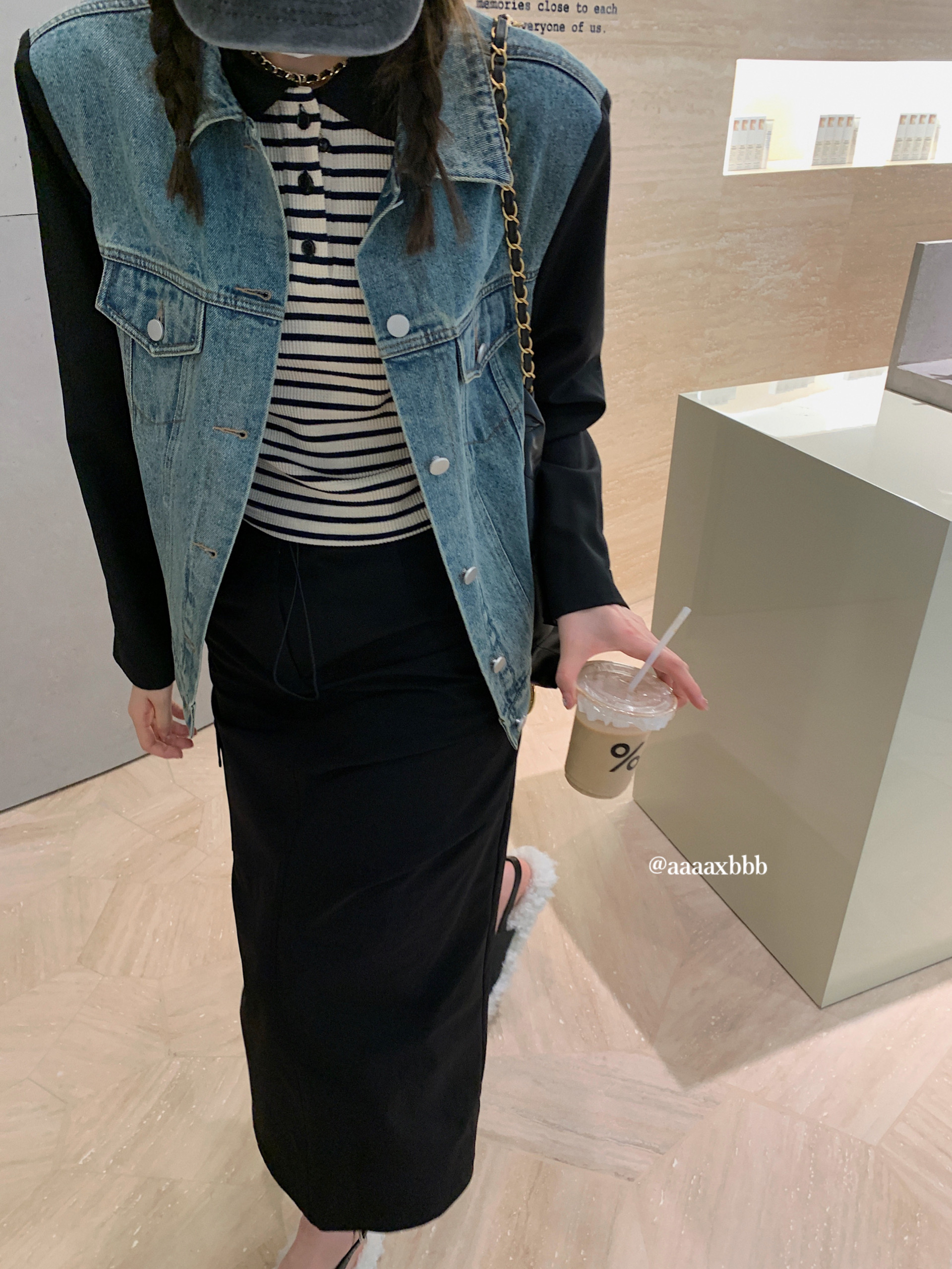 aaaaxbbb 纳丁黑 工装风直筒捏褶半身长裙女黑色后开叉高腰半裙