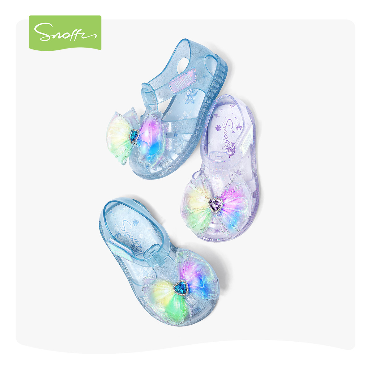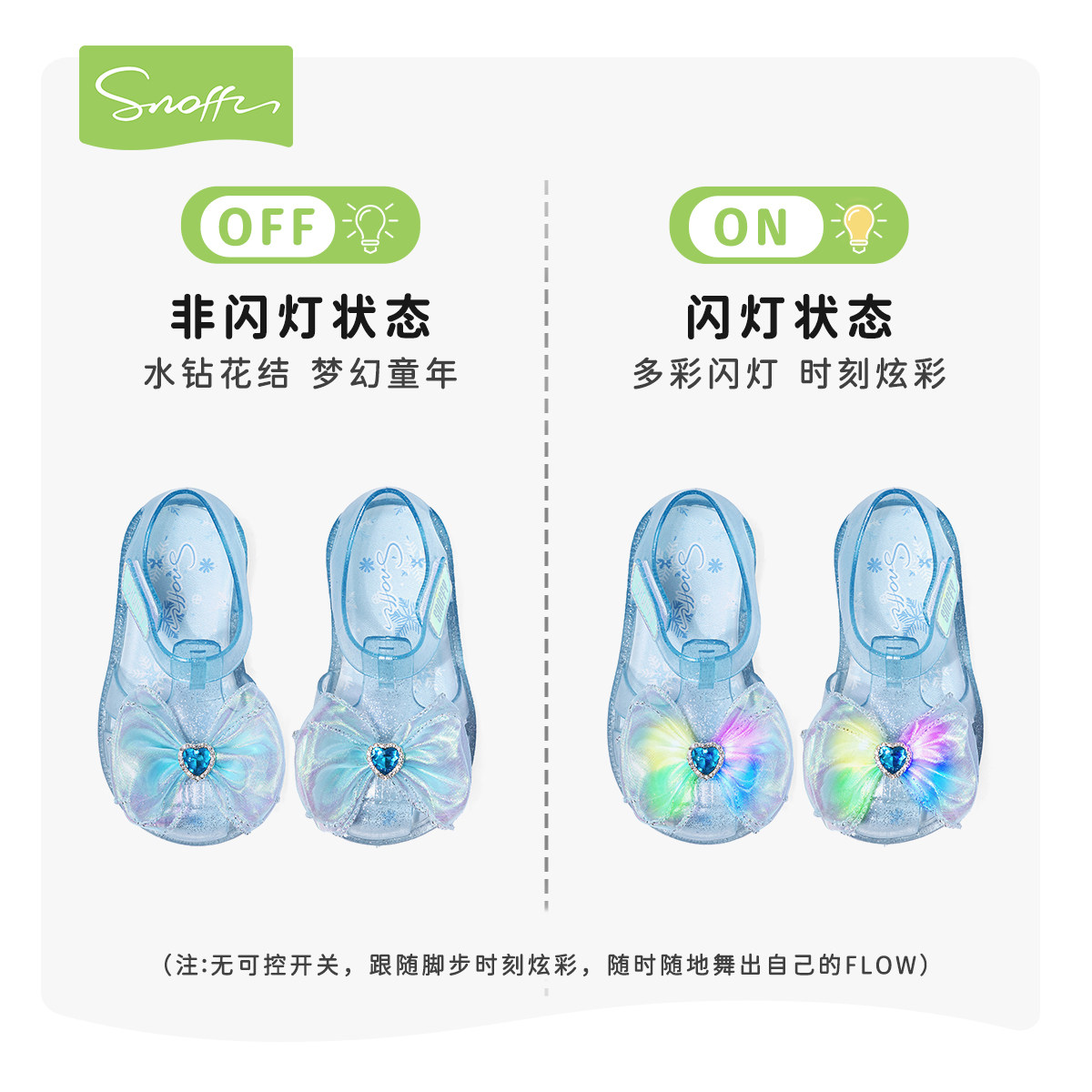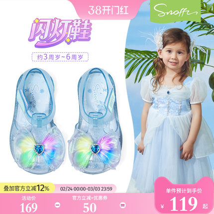 闪灯鞋|斯纳菲女童水晶爱莎果冻凉鞋夏季沙滩踩水防滑宝宝包头鞋