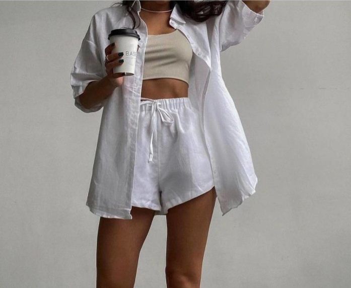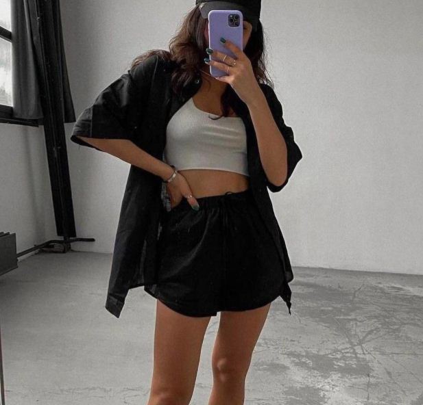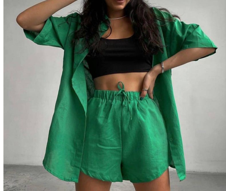 气质百搭度假欧新款外贸街头单排扣短袖衬衣短裤宽松时尚休闲套装