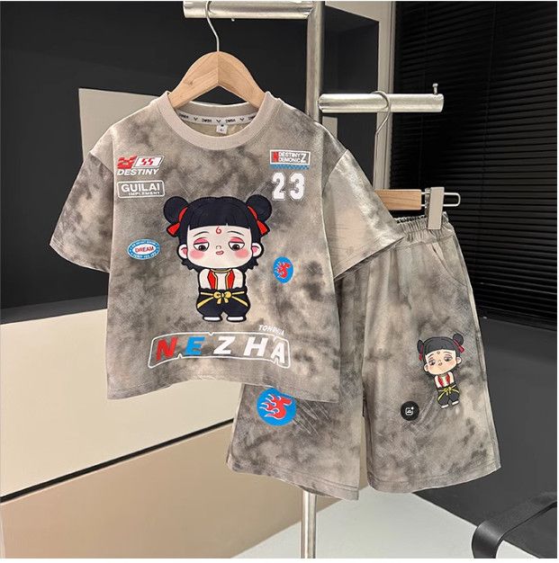 哪吒衣服男童短袖套装帅气时髦2025新款夏季洋气宝宝男孩儿童服装