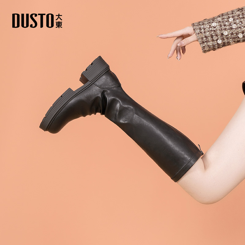 大东dd褶皱长筒靴女2025新款秋季女靴厚底高筒堆堆靴粗跟长靴子女