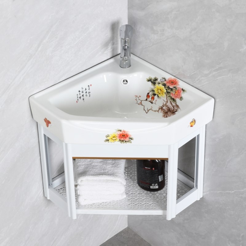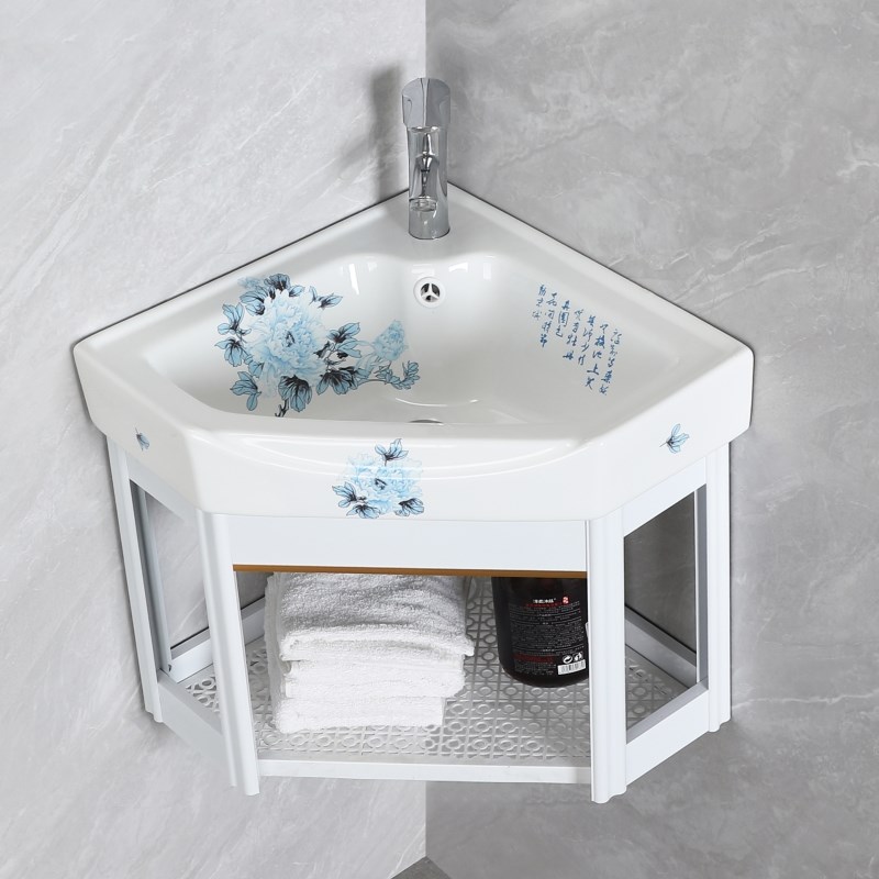 卫生间挂墙式洗手盆柜组合陶瓷三角洗脸盆转角小户型阳台面盆迷你