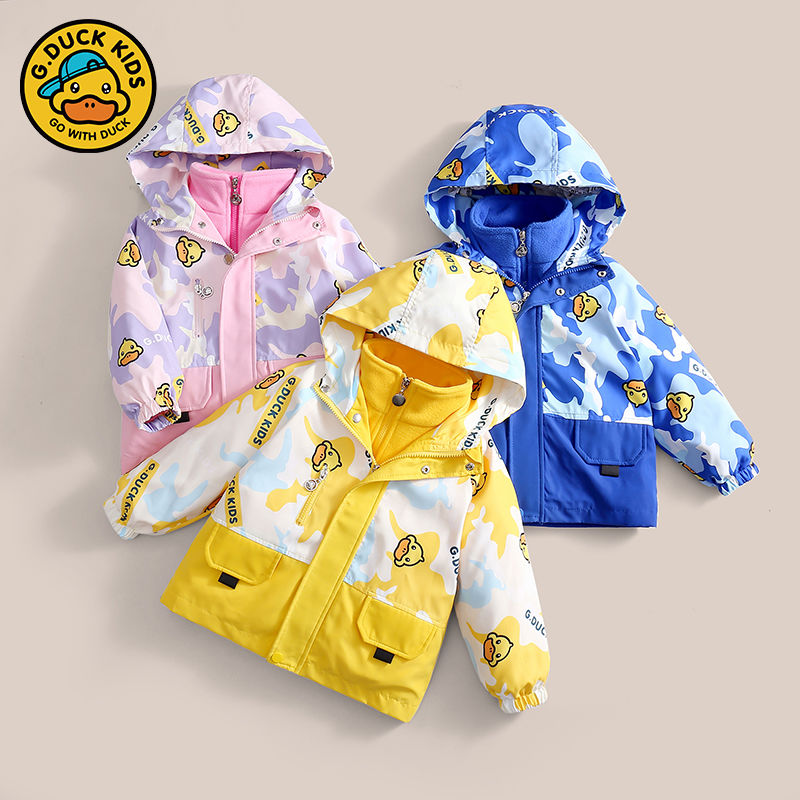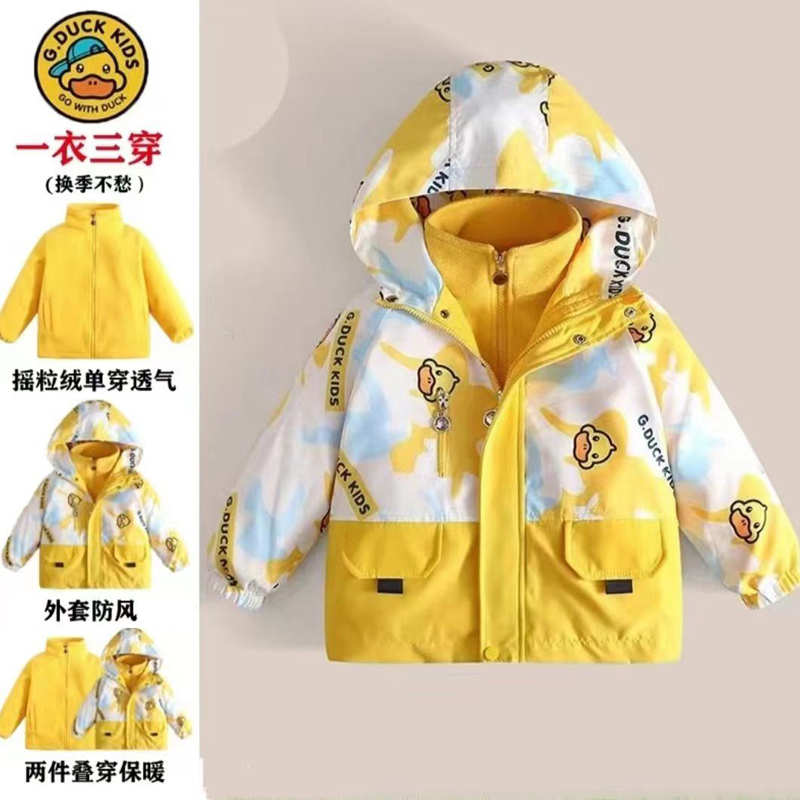 正品小黄鸭儿童二合一冲锋衣女童外套男童春秋款防风风衣两件套潮