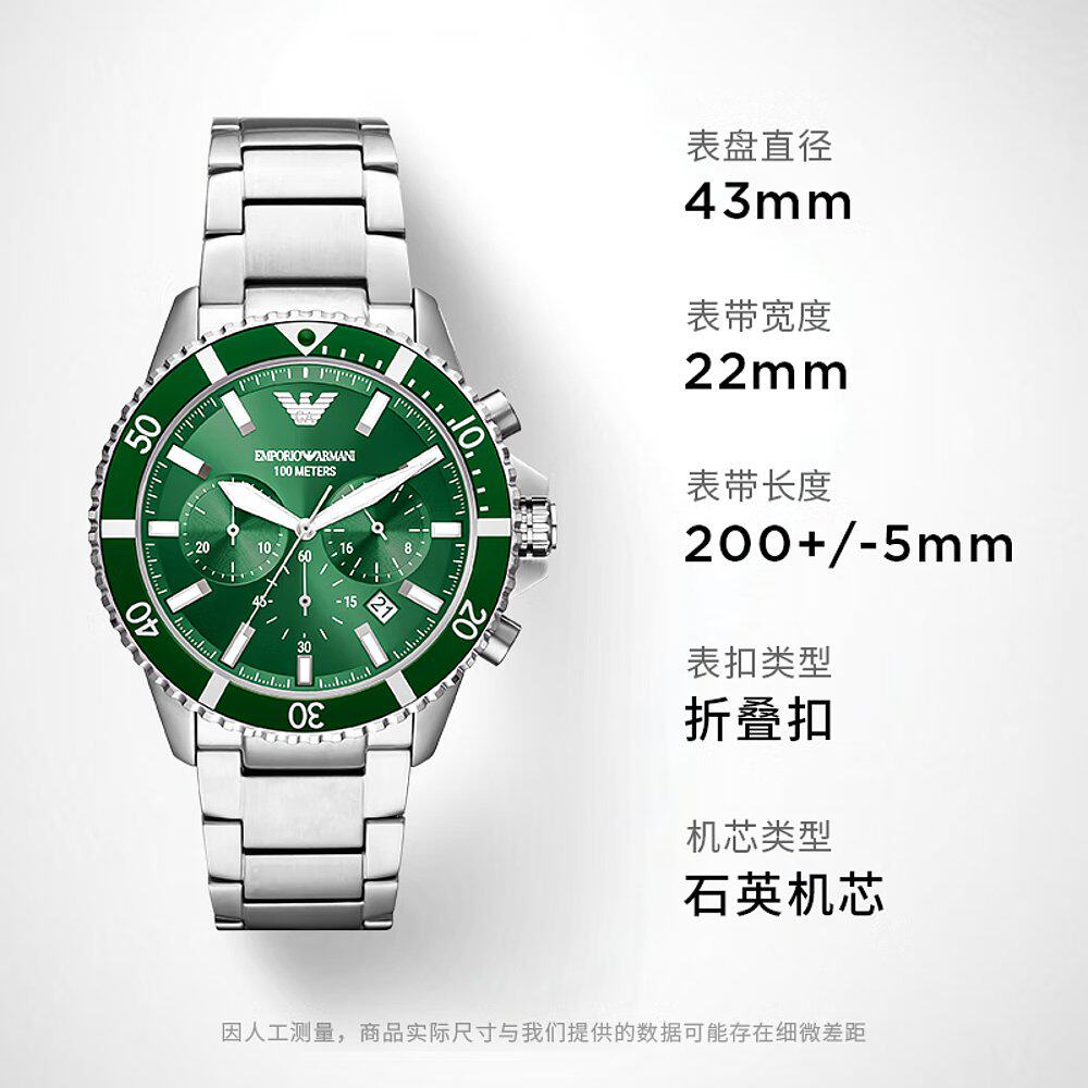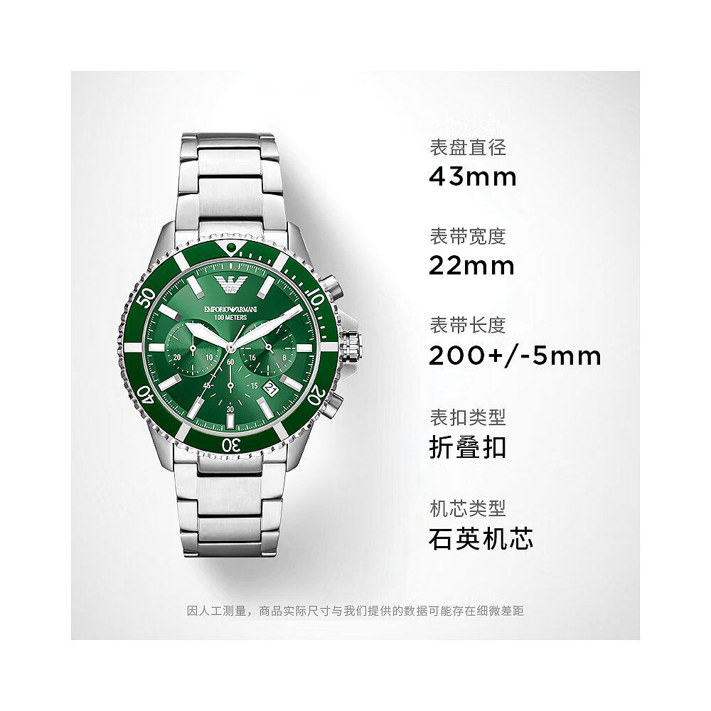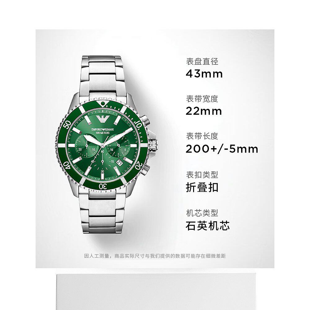 香港直邮【海外版】阿玛尼Armani手表男水鬼钢带石英三眼男士腕表
