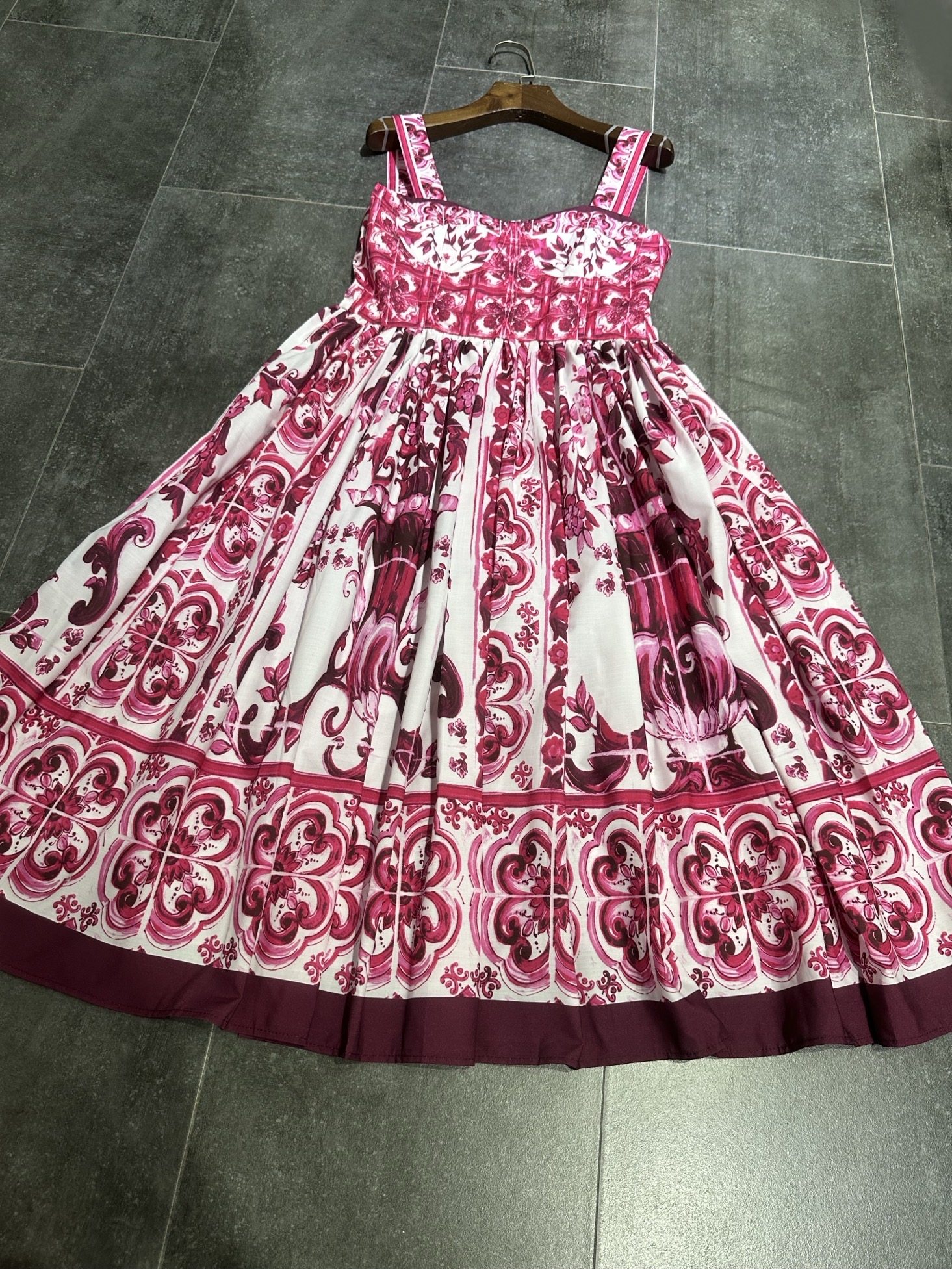 青花瓷定位印花吊带背心连衣裙