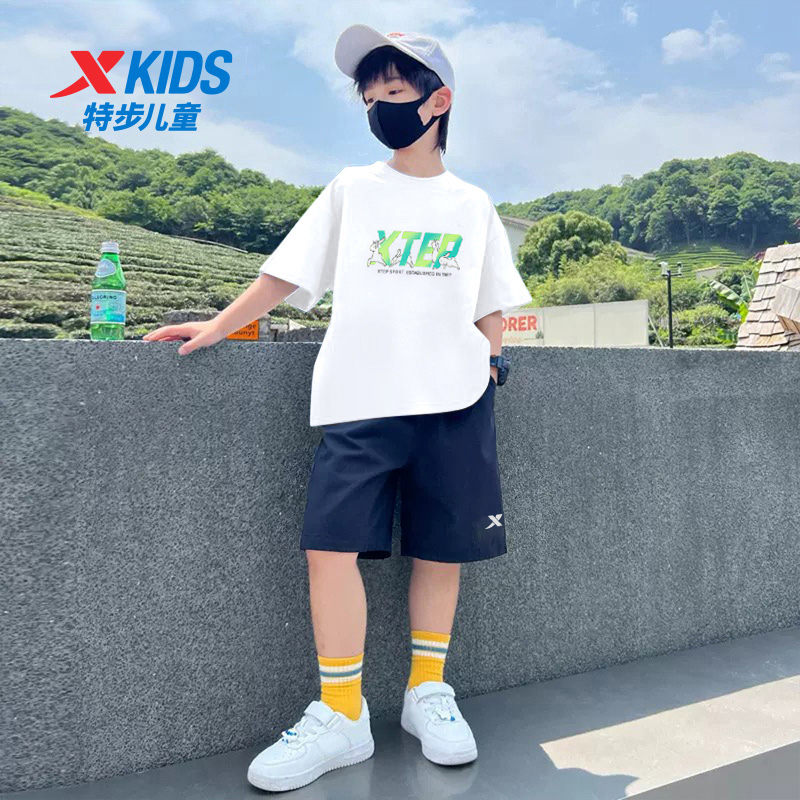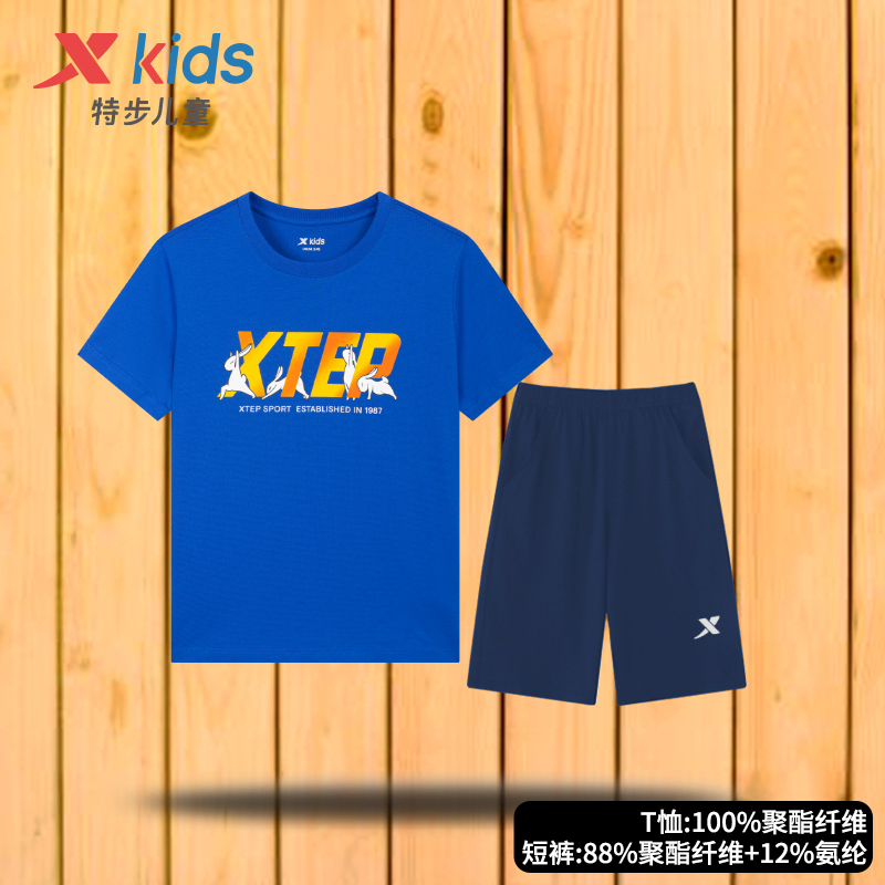 特步童装男童休闲套装2025秋季新款儿童运动服大童短袖短裤夏装男