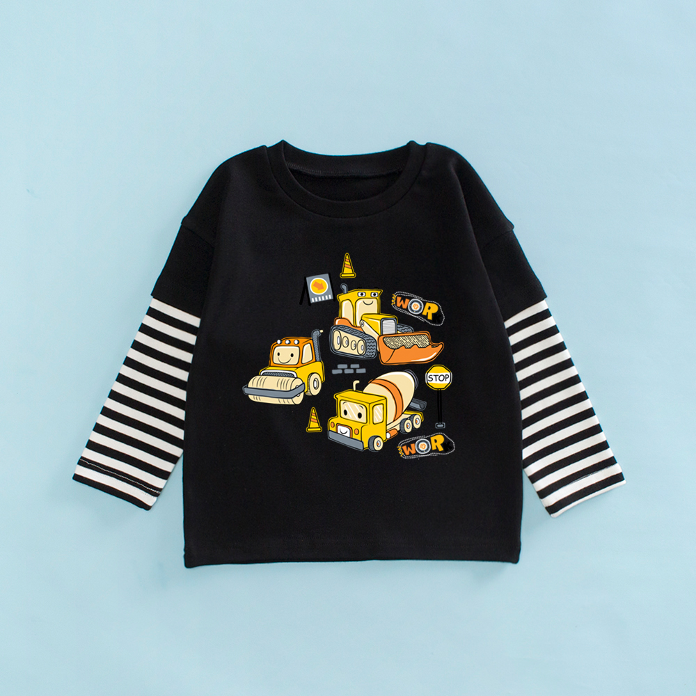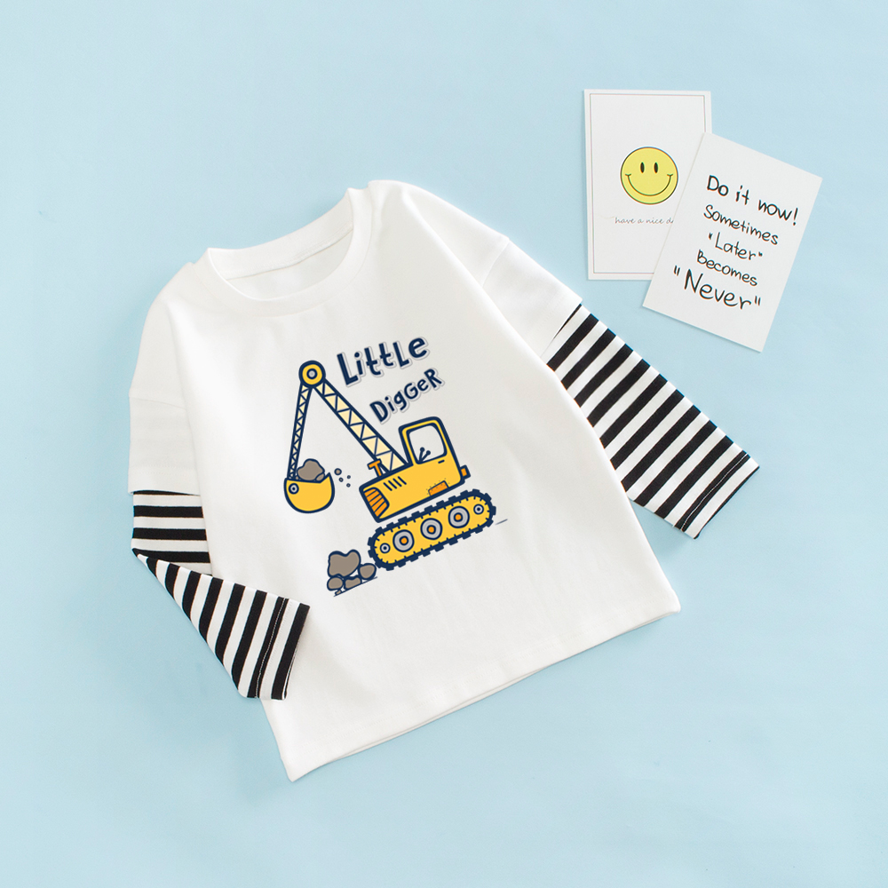 男童T恤春秋款上衣儿童挖掘机衣服春季小童长袖春装宝宝车车童装