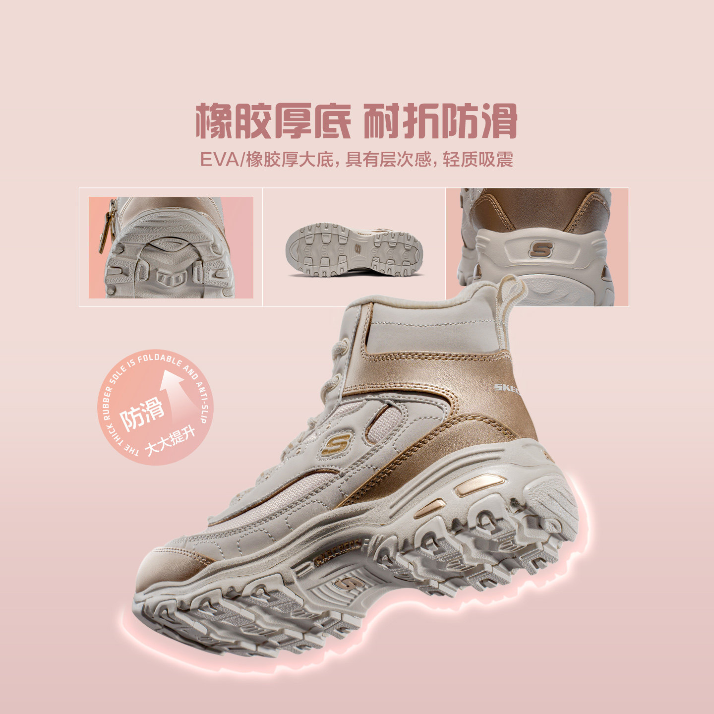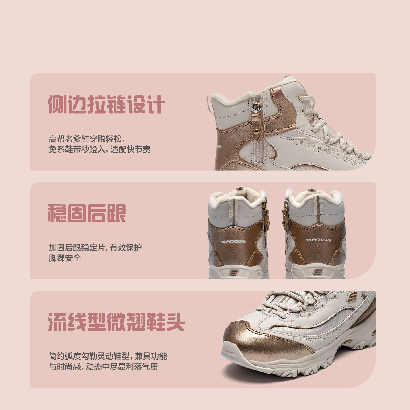 斯凯奇女鞋2025新款冬季加绒保暧雪地靴厚底老爹鞋舒适短靴棉鞋