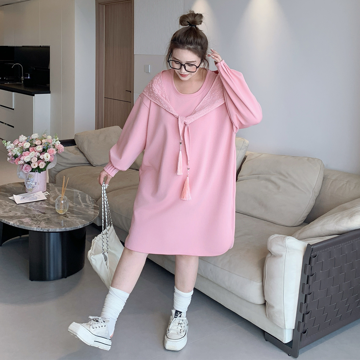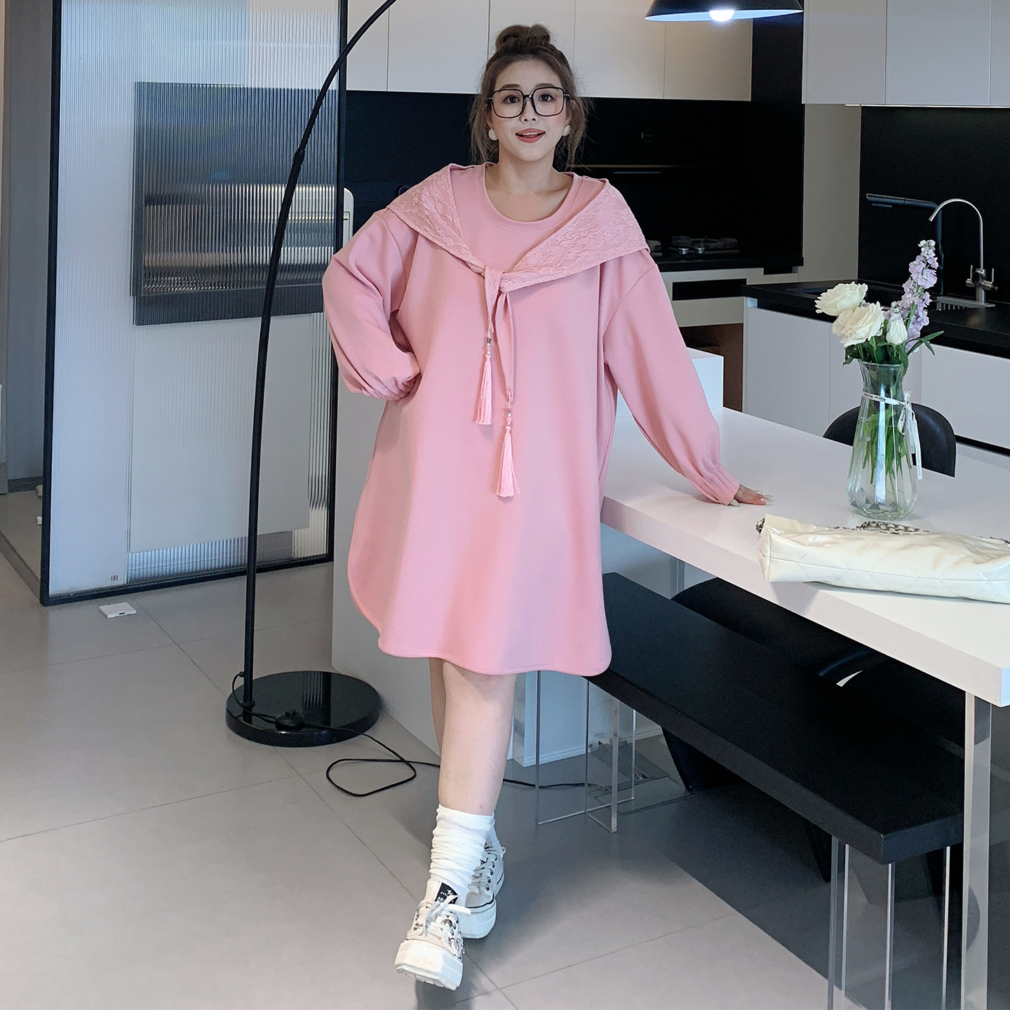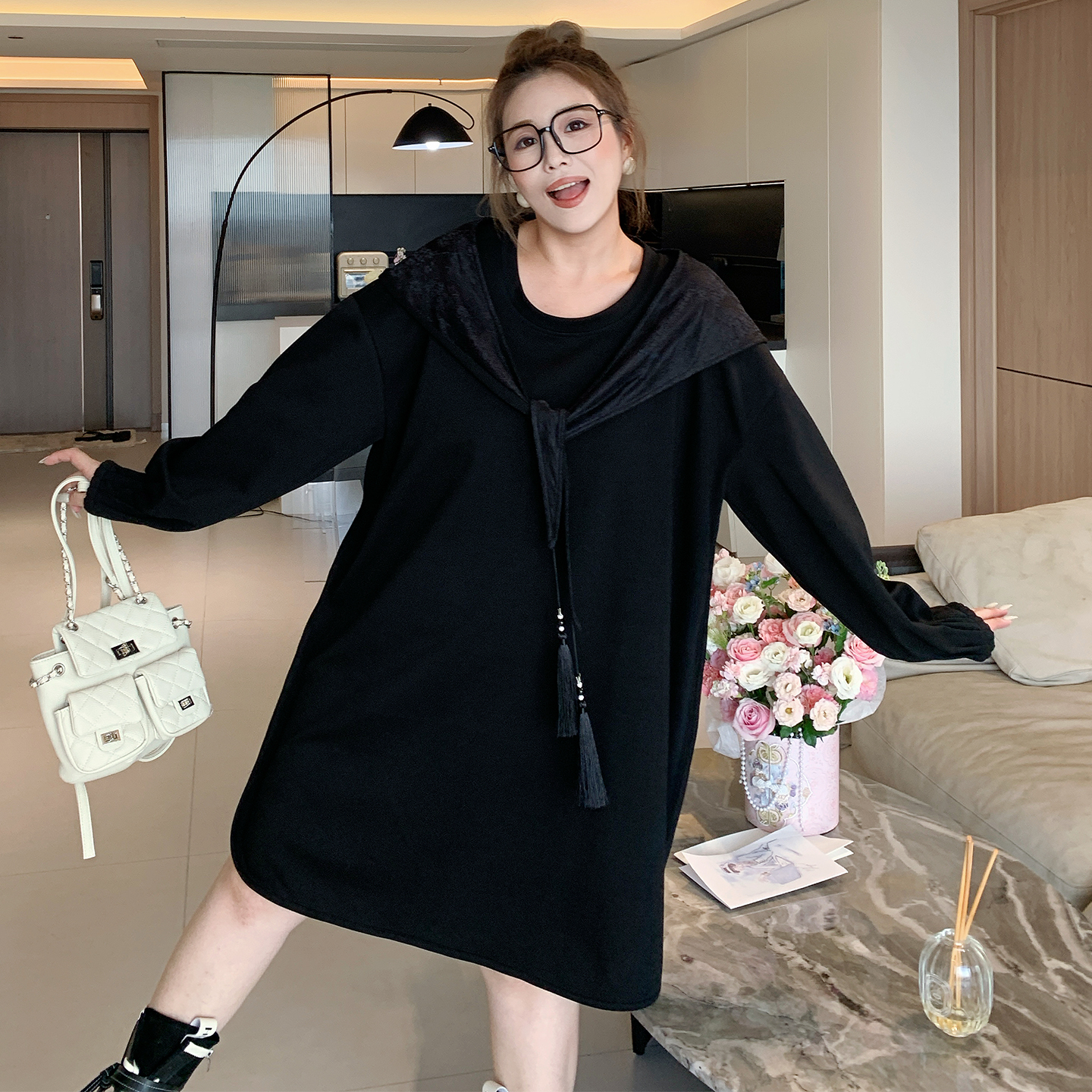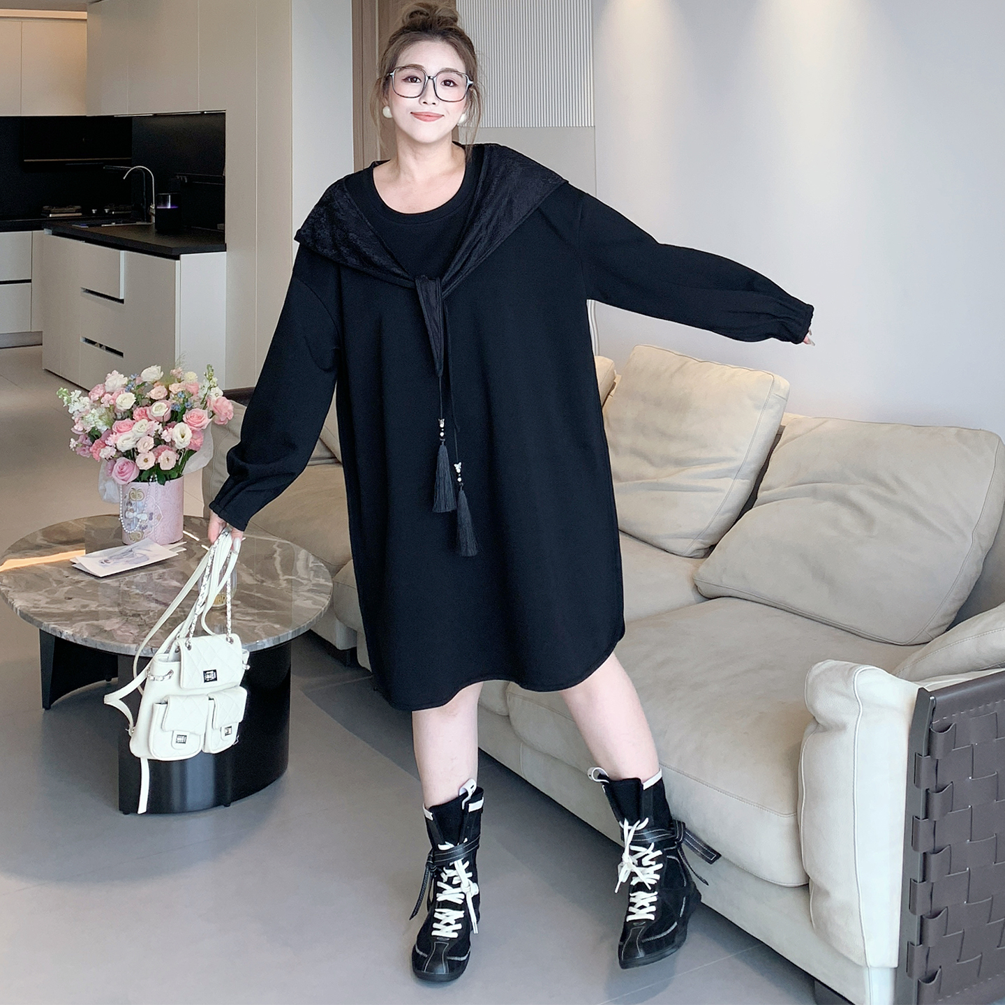 媛子家大码秋季新款胖mm宽松通勤时尚百搭宽松显瘦连帽披肩连衣裙