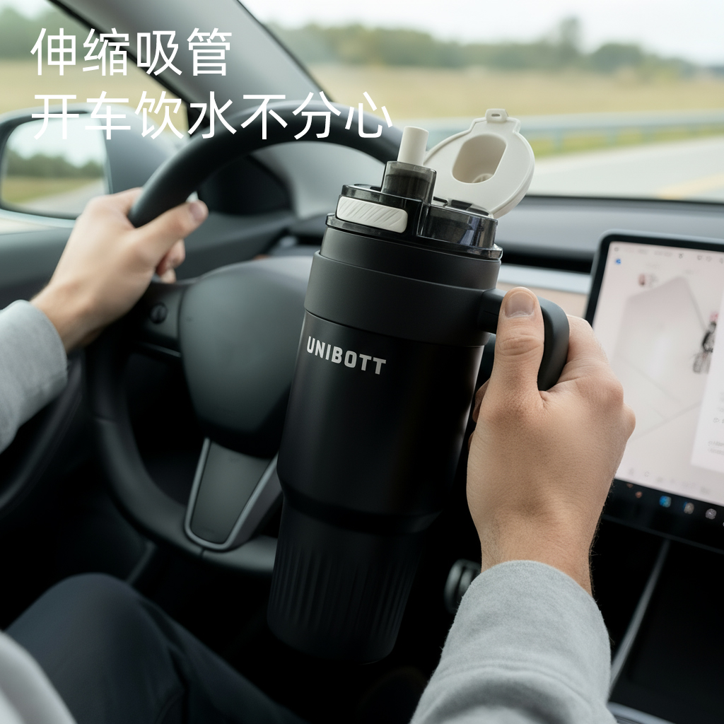 Unibott巨无霸保温杯大容量车载2025新款冰霸保冷吸管水杯男大号