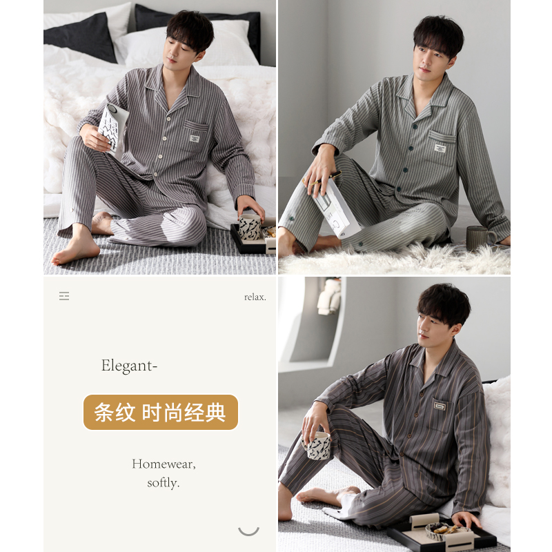 家乐芬睡衣男士春秋季秋款纯棉长袖家居服男款秋冬薄款加大码套装