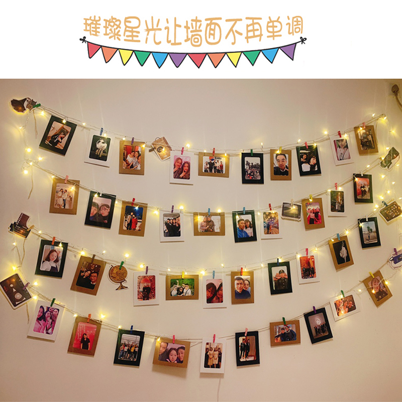 速发创意照片墙装饰相框组合挂绳免打孔麻绳夹子钉打印洗照片挂墙