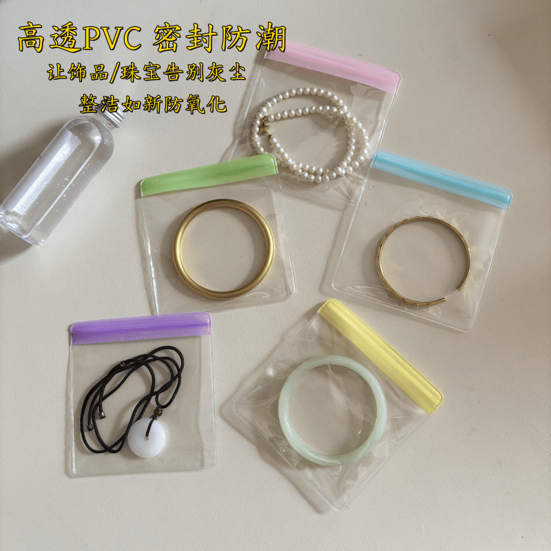 透明PVC密封首饰收纳袋耳环手镯收纳盒防尘防氧化珠宝彩色自封袋