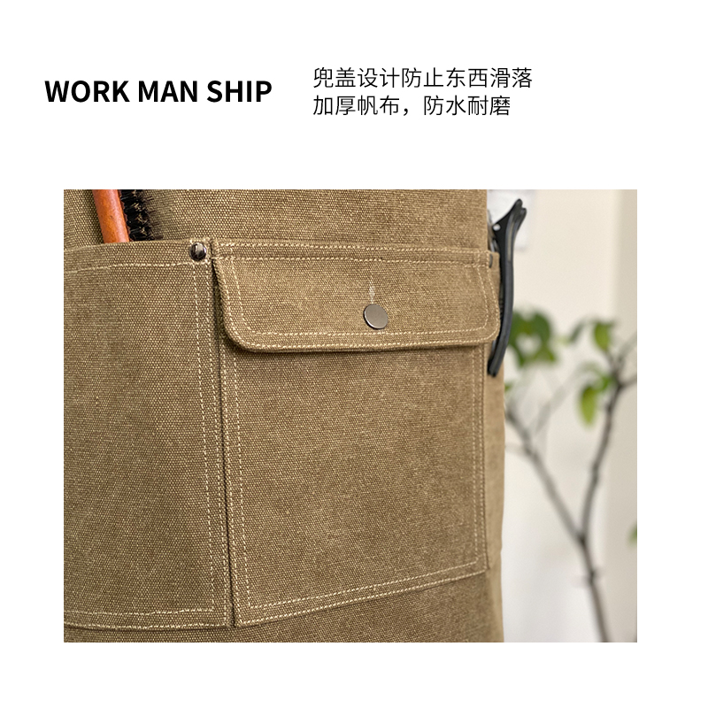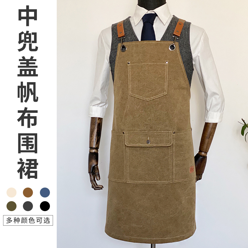 日式定制logo印字围裙咖啡师带兜罩衣男奶茶店防污背带款工作服女