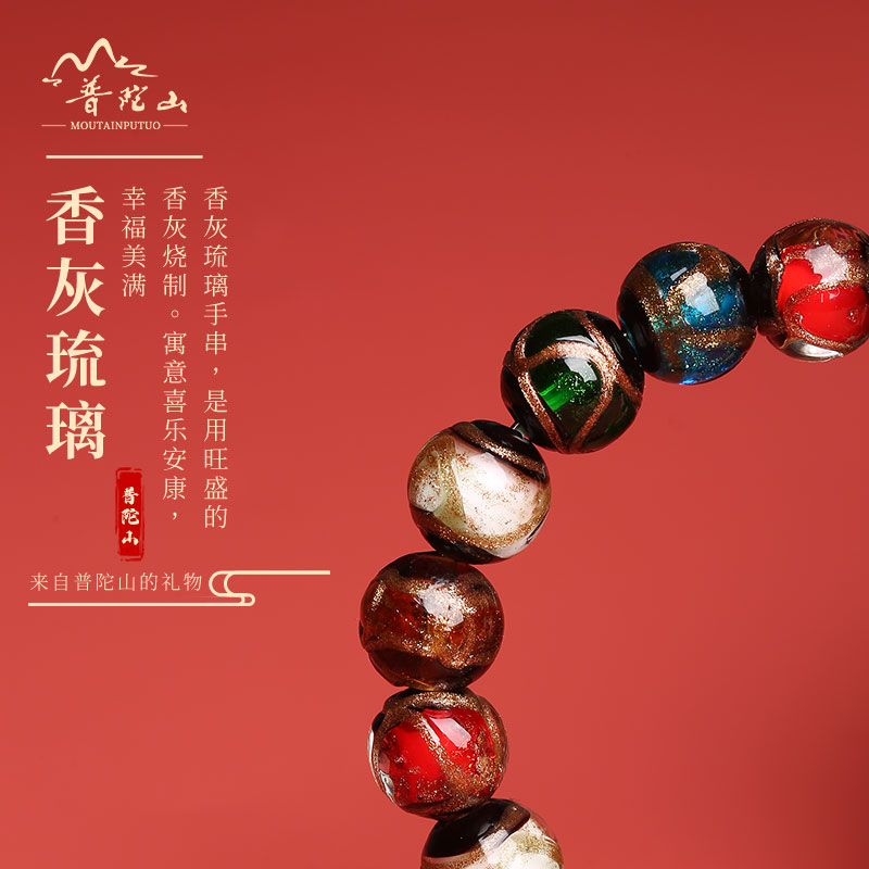 普陀山正品流通处香灰琉璃手串吞金兽佛珠女款手链转运珠朱砂雍香