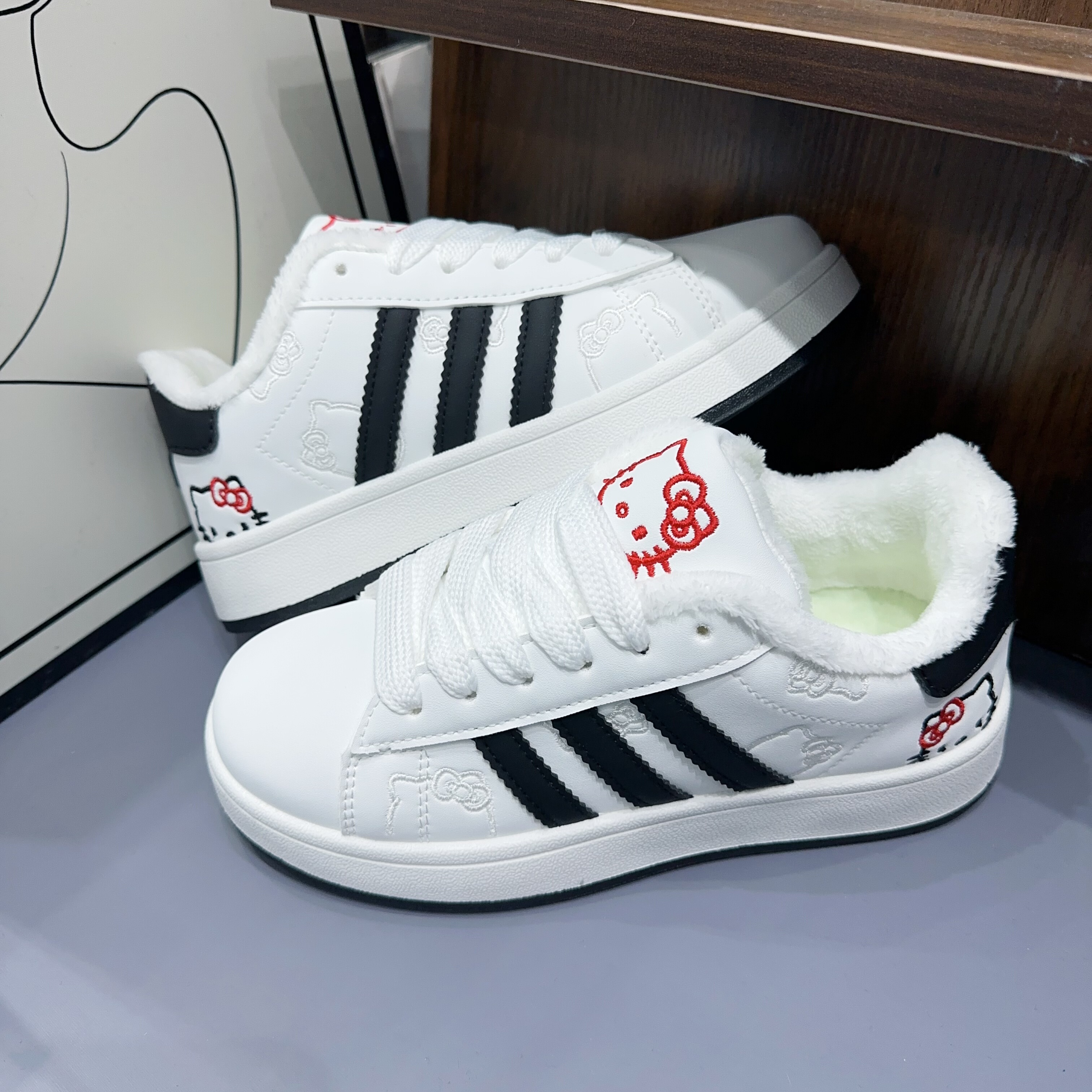 新款小众原创可爱KT猫小白鞋女ins风百搭学生休闲运动面包鞋