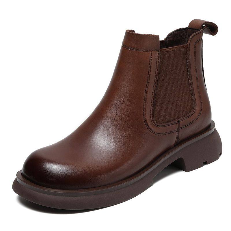 切尔西短靴女短烟筒靴真皮牛皮新款厚底单靴马丁靴春季烟管靴