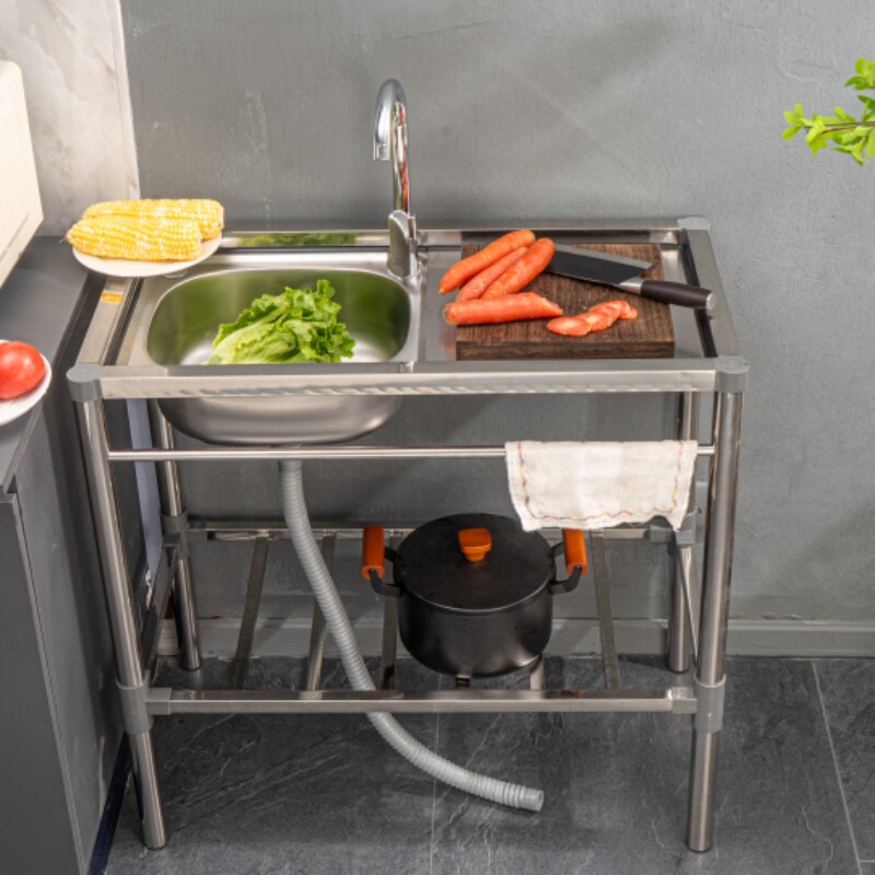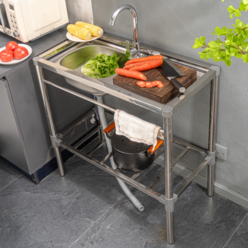 厨房不锈钢水槽带操作台平台洗菜水池洗手盆家用一体台面单槽双槽