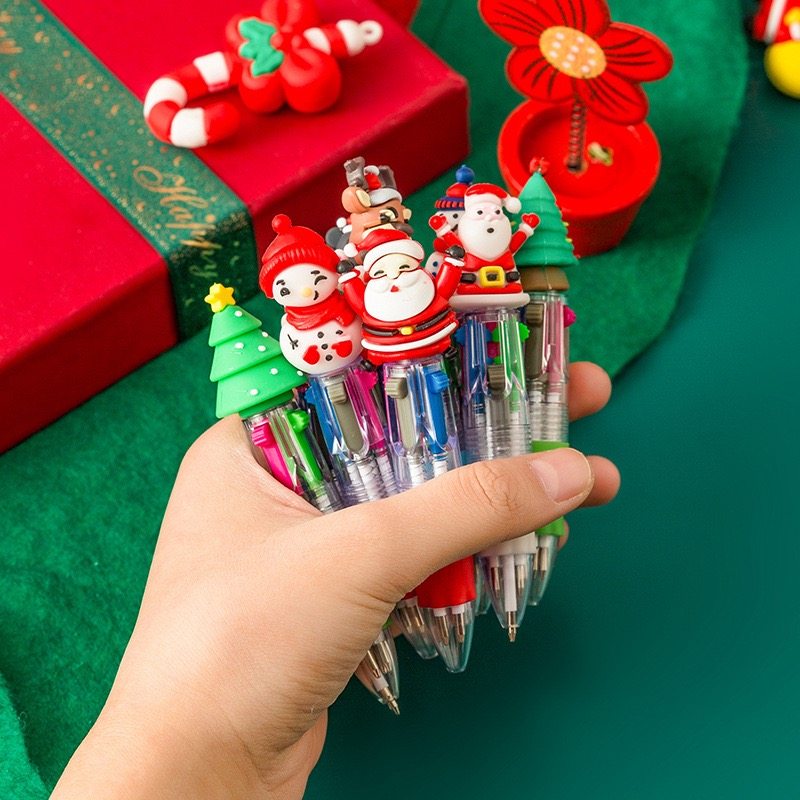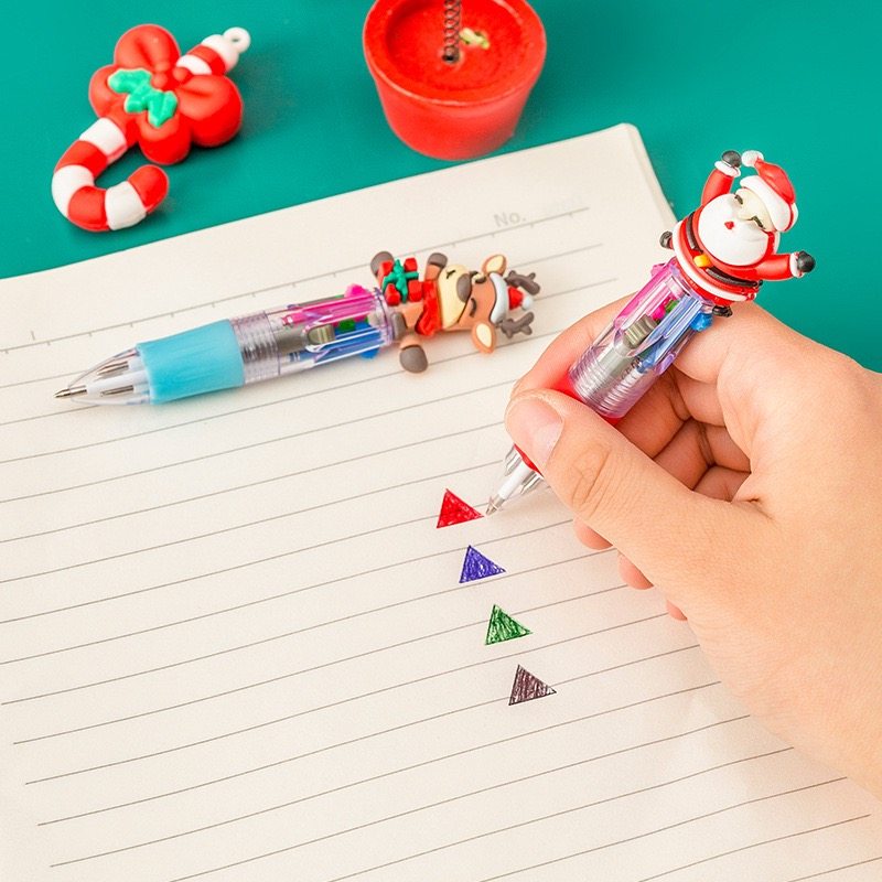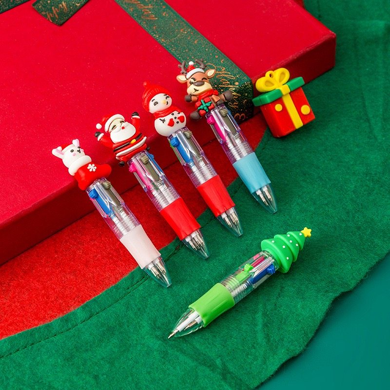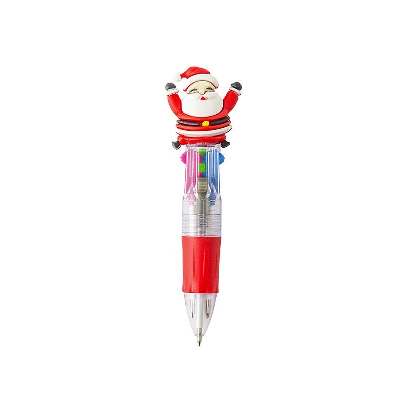 可爱卡通迷你圣诞四色圆珠笔彩笔创意儿童文具小礼品学生奖品礼物