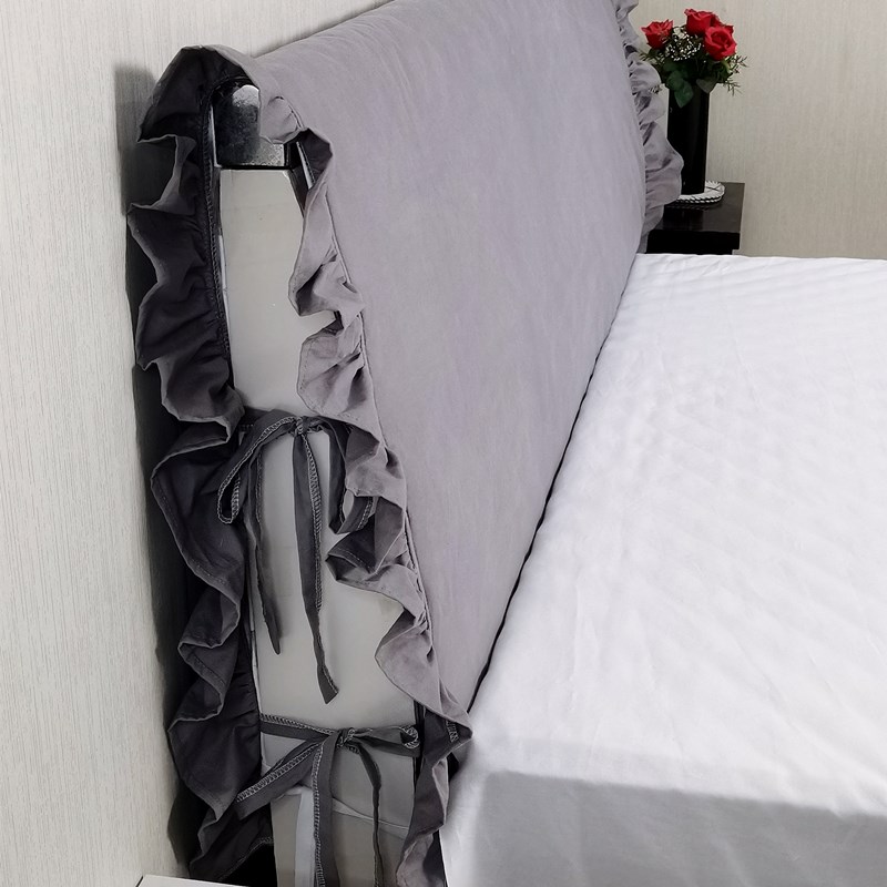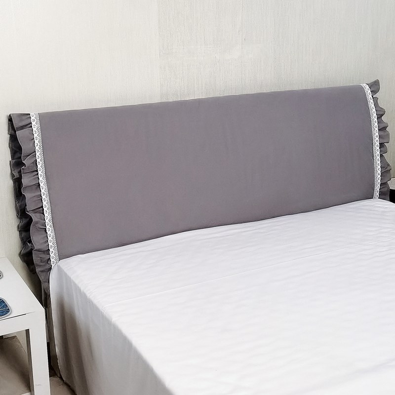 荷叶边床头罩全棉布艺灰色床头套防尘罩软包欧式实木弧形简约现代