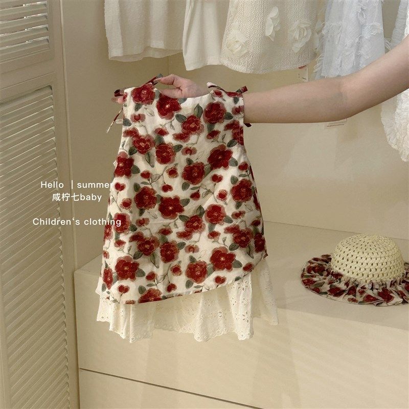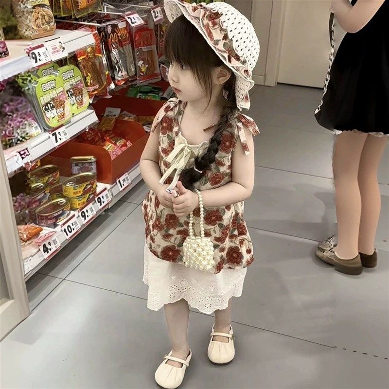 2024童装女童碎花假两件背心连衣裙夏季新款儿童宝宝甜美吊带裙子