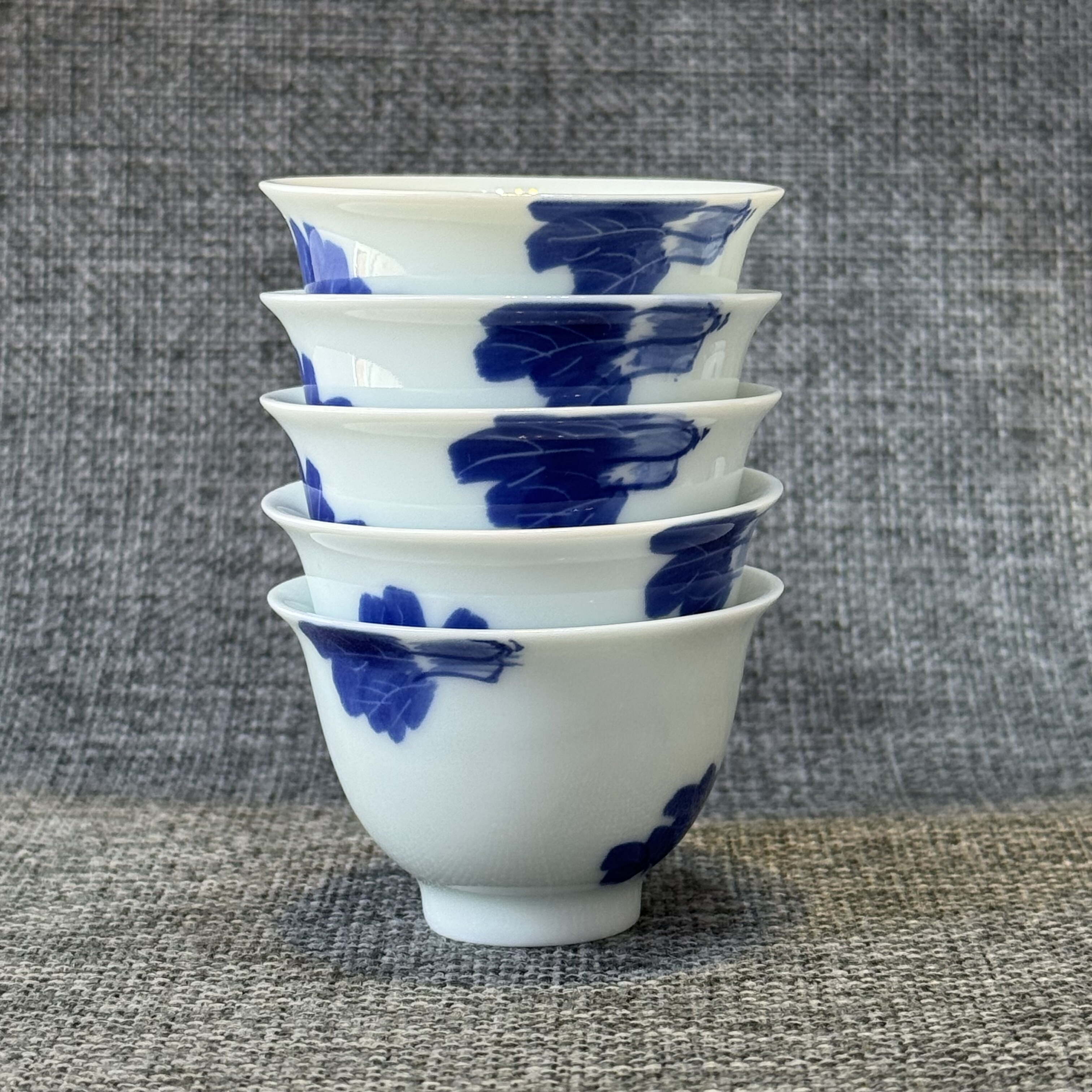 白菜百财潮汕功夫茶杯必若深珍藏瓯枫溪纯手绘鹅蛋青青花杯原矿杯