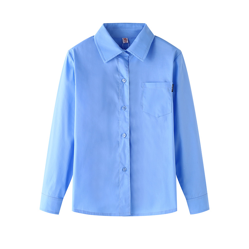 男女童白色衬衫长袖浅蓝儿童天蓝色衬衣春秋初中小学生校服棉学院