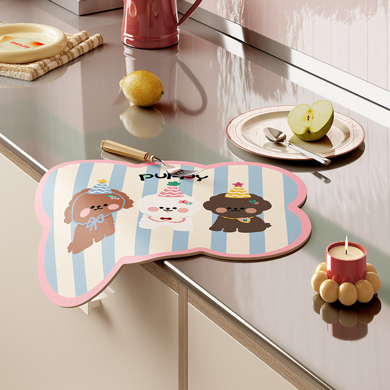 Hi皮小狗卡通厨房台面沥水垫咖啡机专用吸水垫吧台洗手台碗盘餐垫