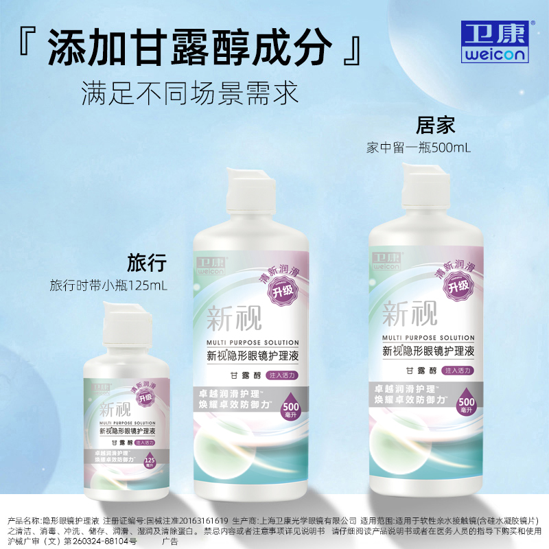 卫康隐形眼镜美瞳护理液新视魅大小瓶清洁除蛋白润滑消毒官方正品