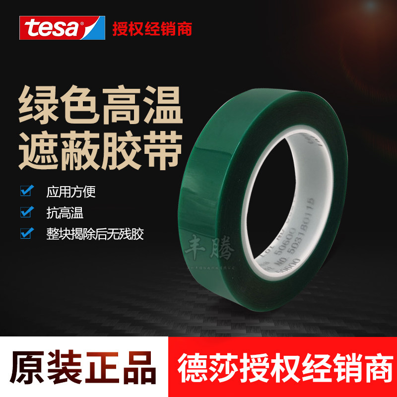 德莎tesa50600绿色聚酯胶带pet硅胶耐高温遮蔽单面胶移除无残胶