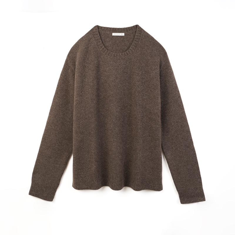 溯戎圆领螺纹纯色宽松长袖羊绒衫