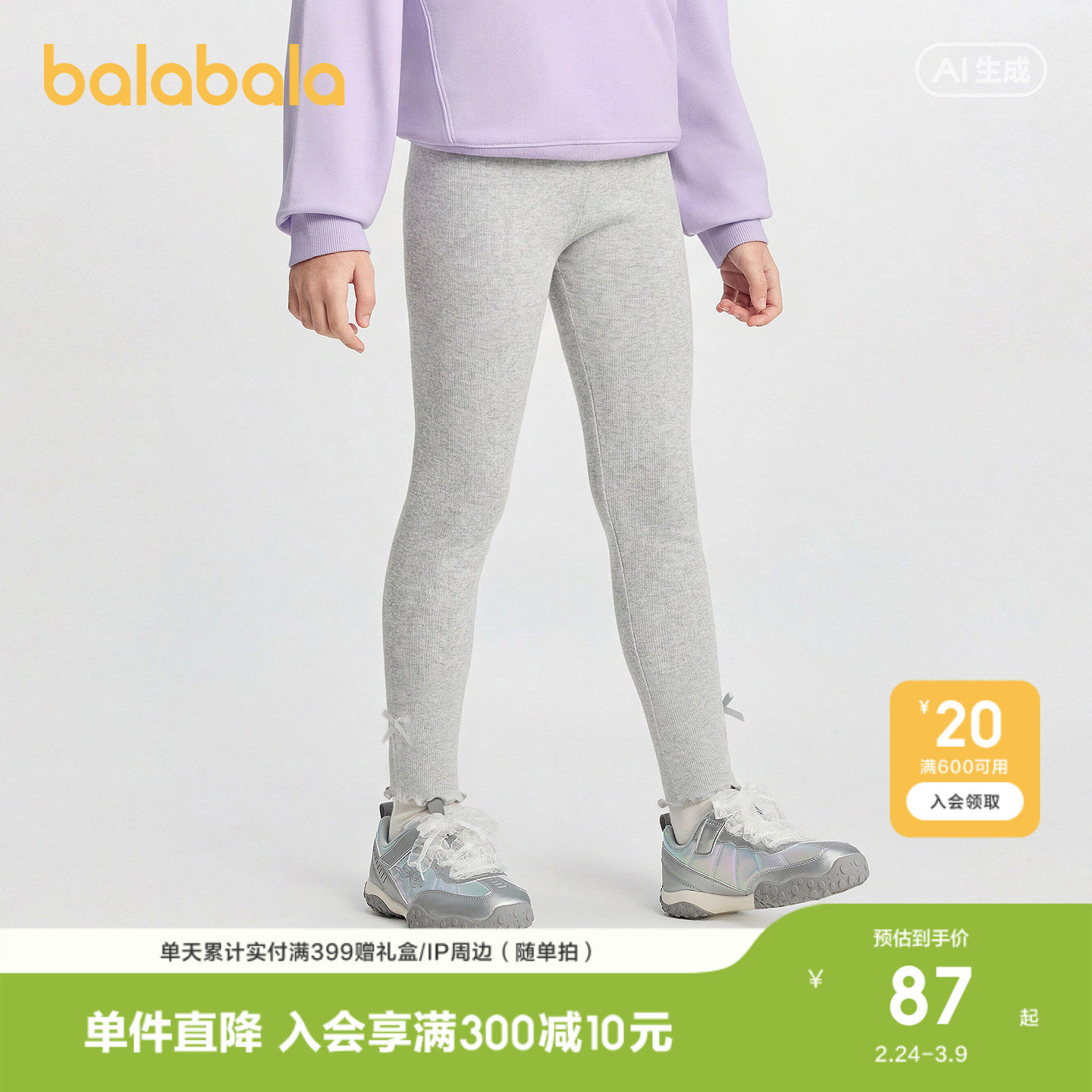 【商场同款】巴拉巴拉童装儿童打底裤女童裤子2026春新款长裤甜美