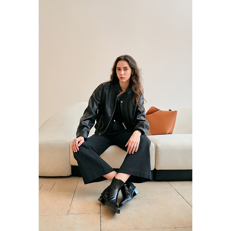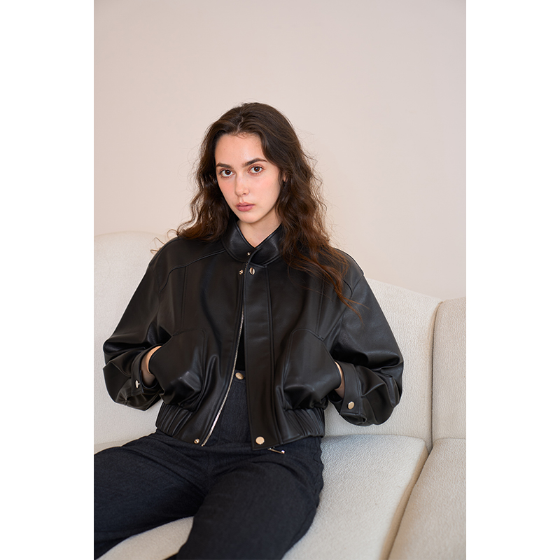 HeyDress黑色高级皮衣女2025秋季新款复古立领夹克小个子短款外套