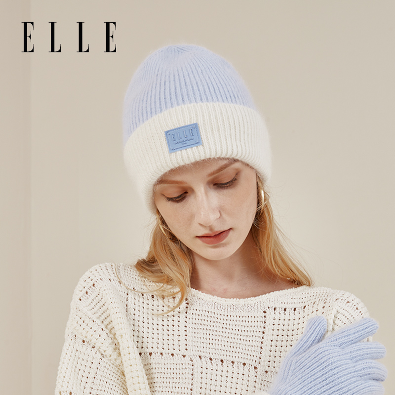 ELLE兔毛针织帽女士秋冬季户外保暖时尚护耳月子冷帽羊毛毛线帽子