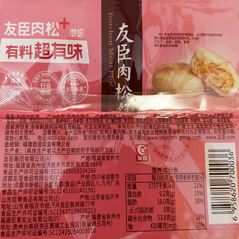 友臣肉松饼糕点早餐代餐面包休闲儿童零食小吃点心食品