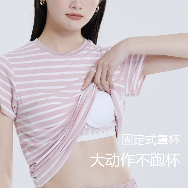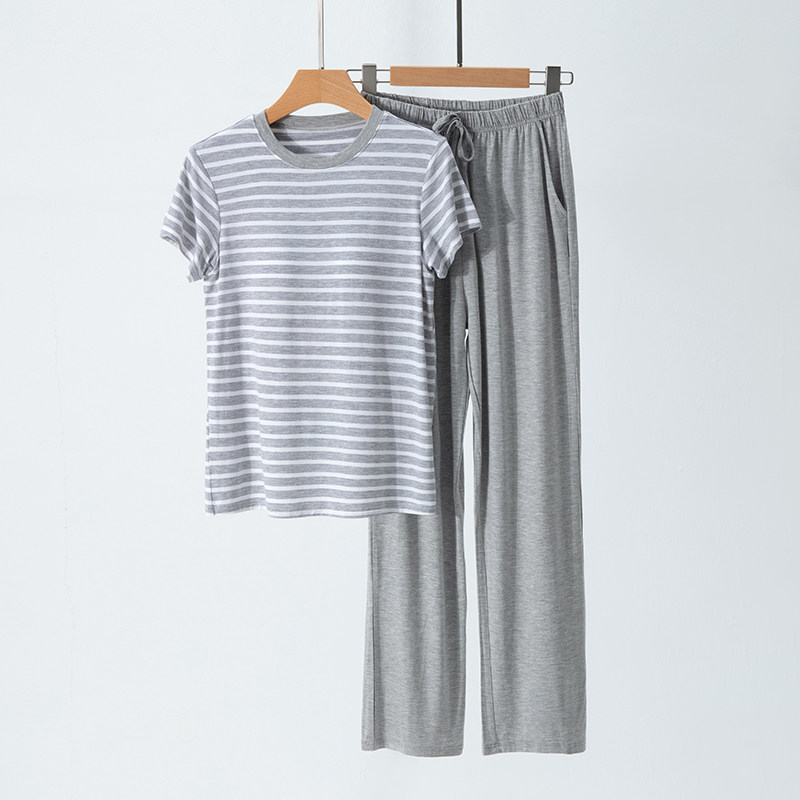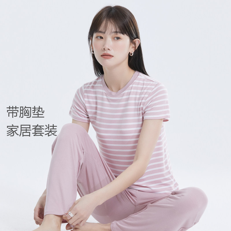 莫代尔带胸垫短袖家居套装可外穿