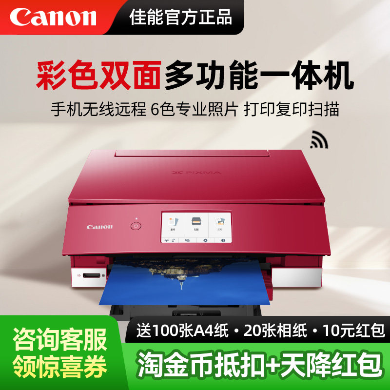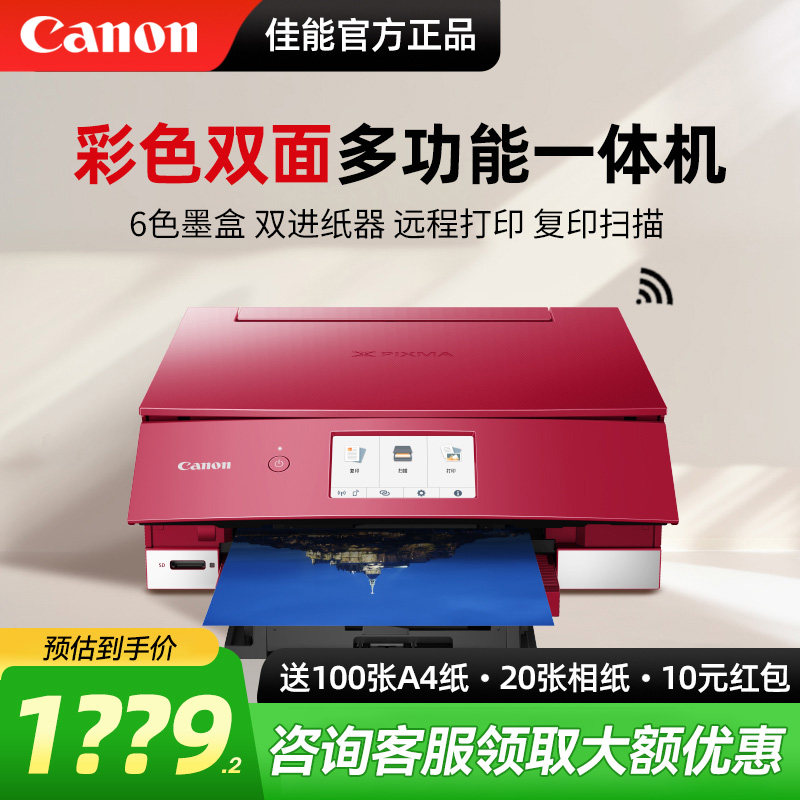 佳能TS8380t照片打印机6色复印扫描一体机家用小型自动双面彩色喷墨办公无线可连手机A4多功能