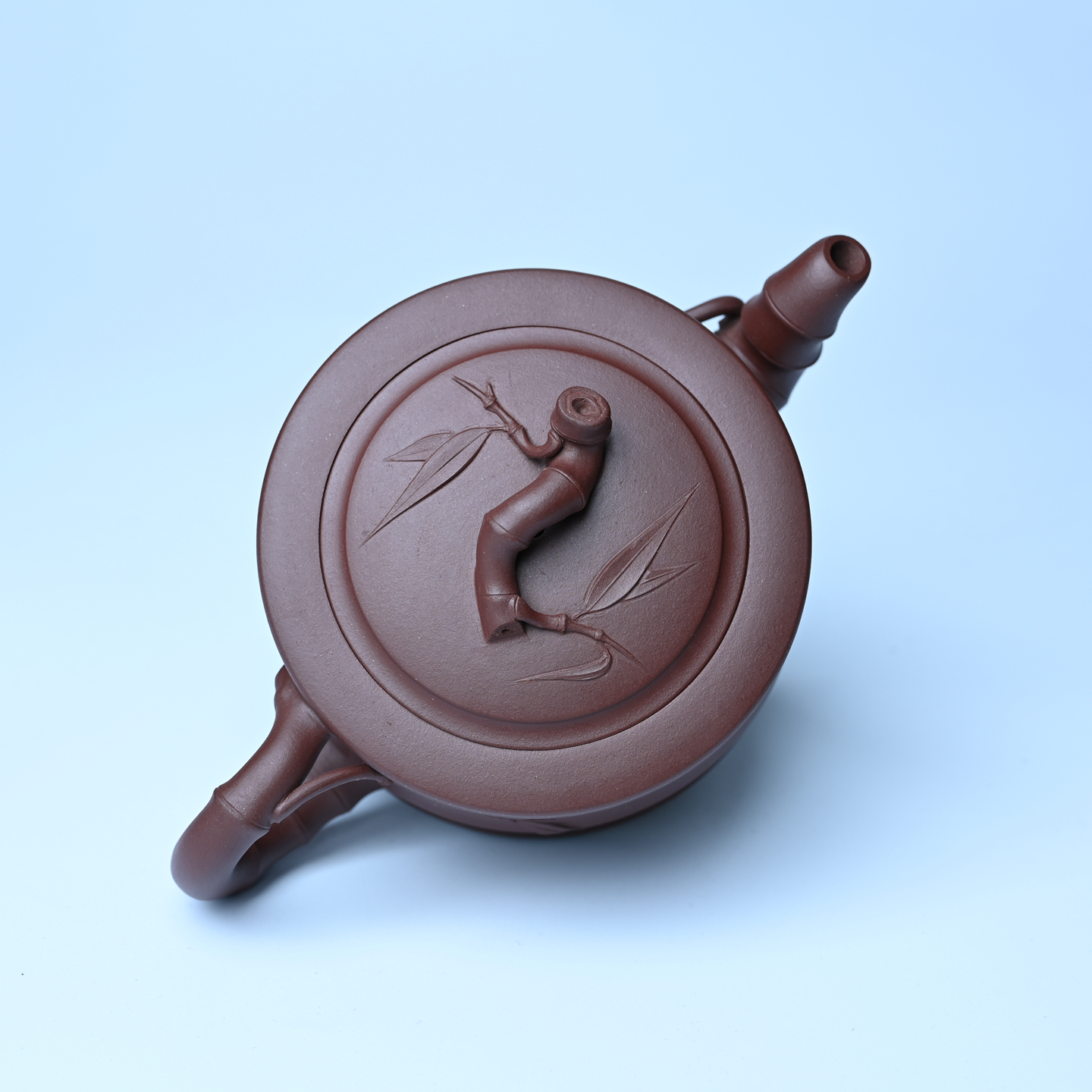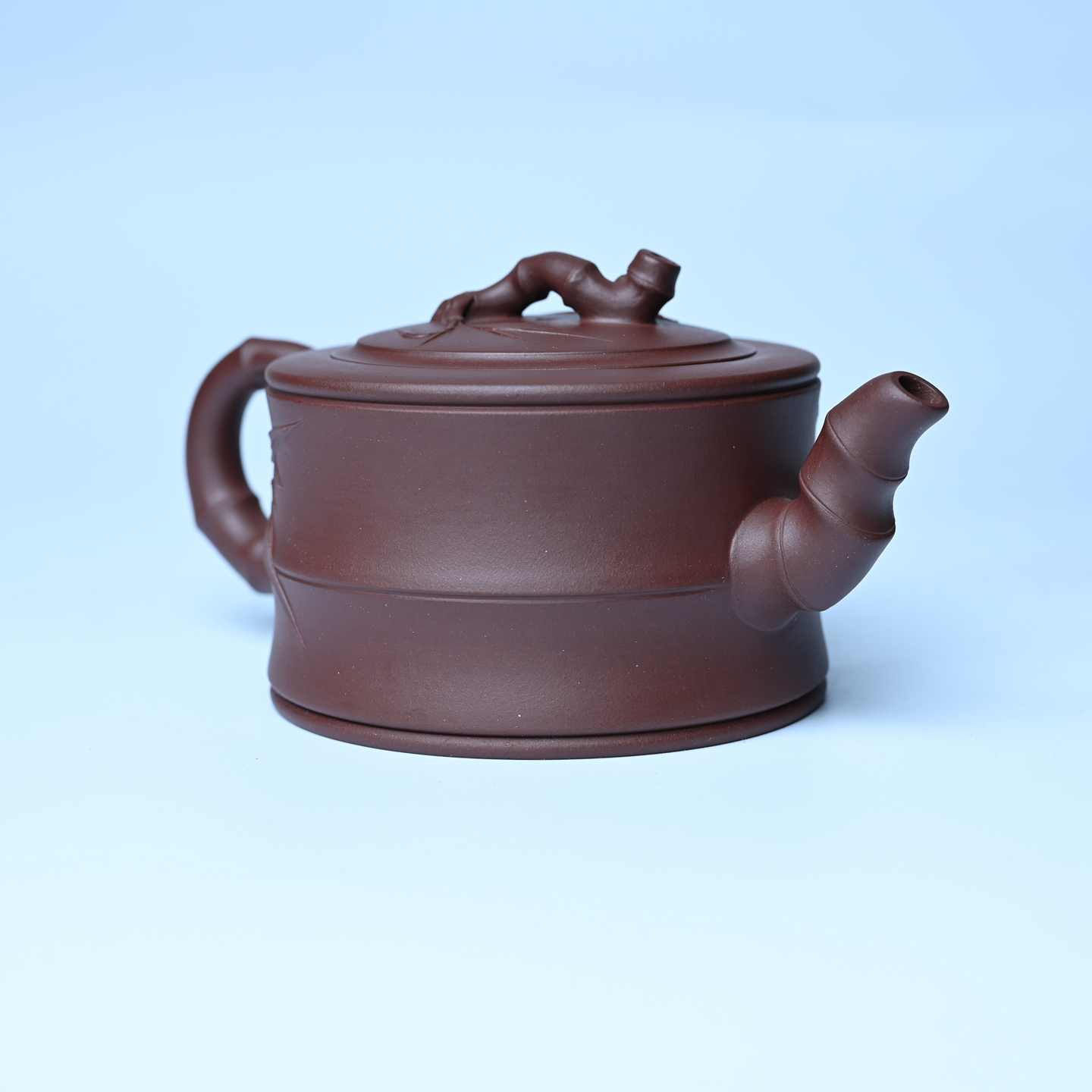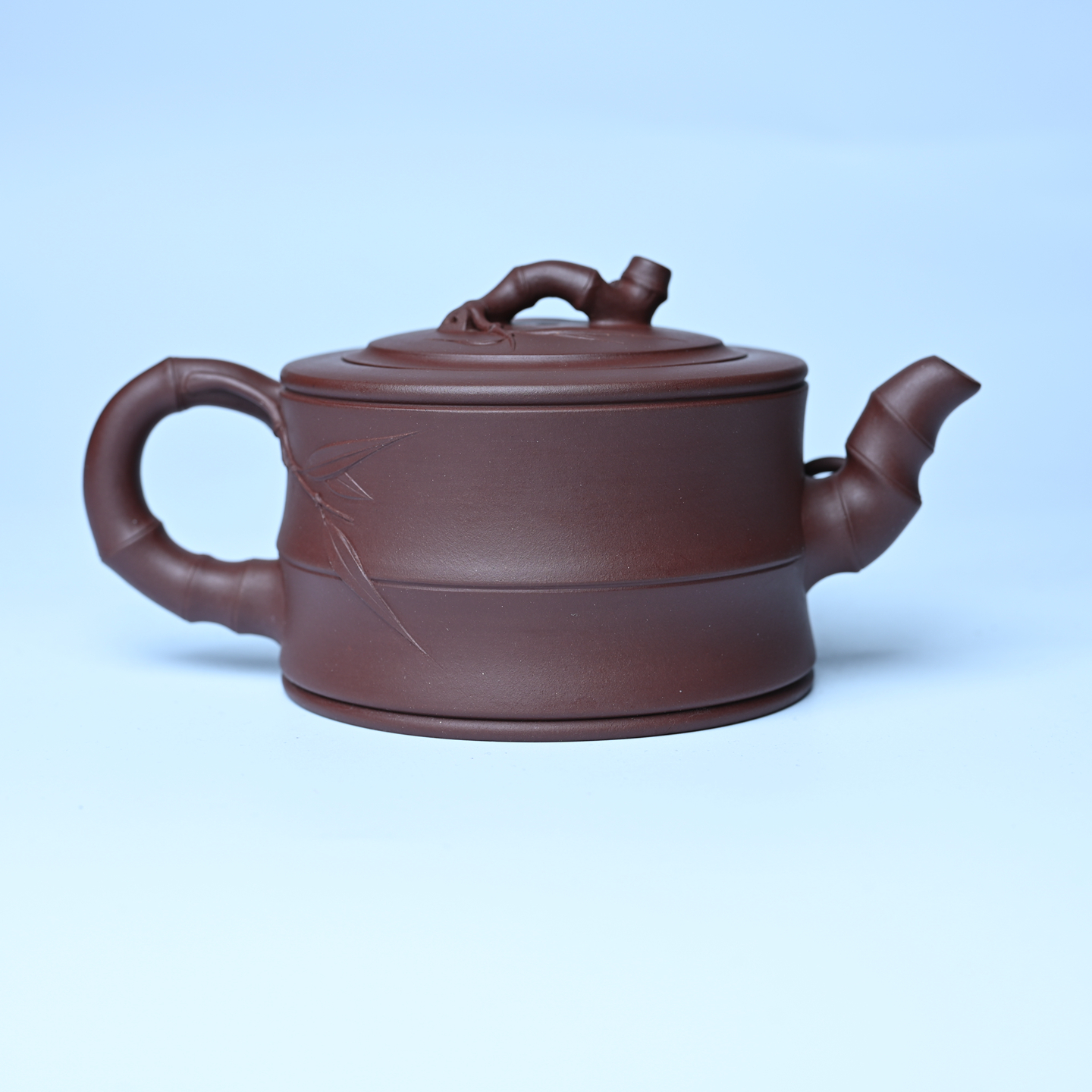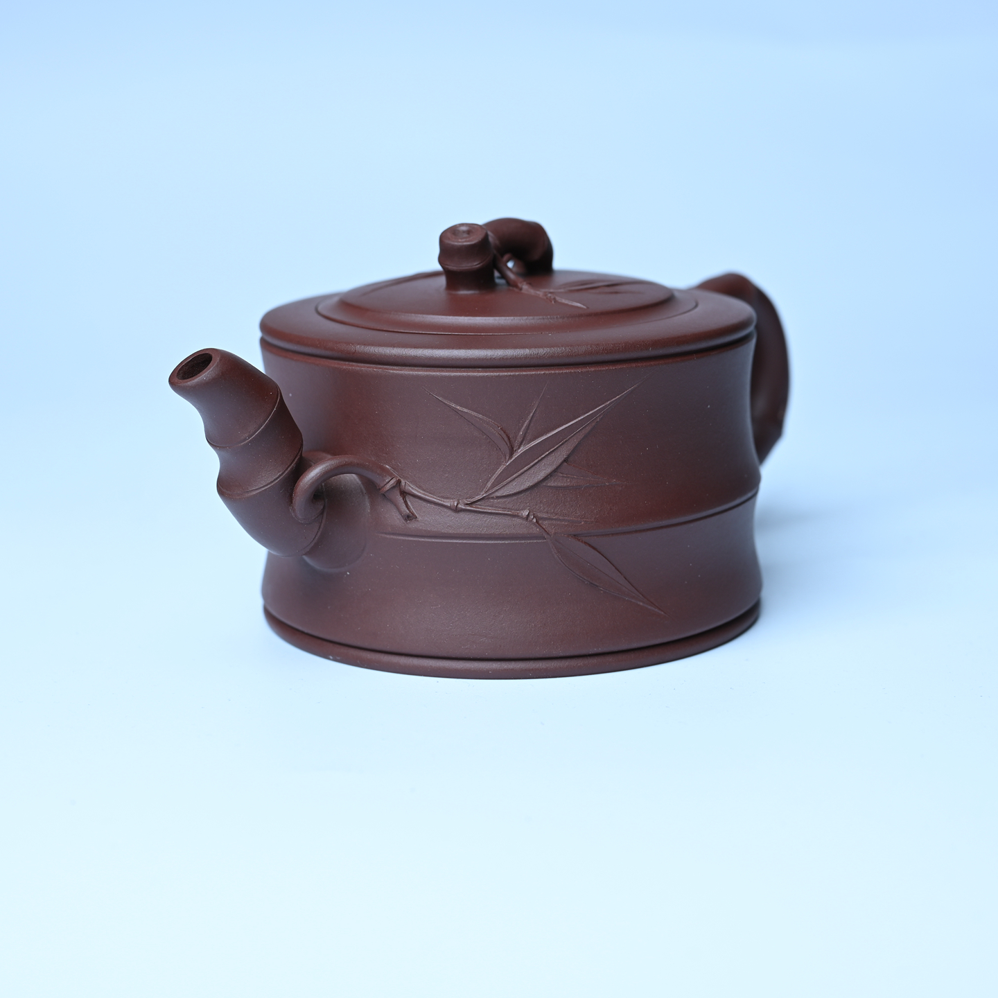 美壶网紫砂壶手工手制紫泥可心竹段茶壶 茶具 贴叶自然生动285cc