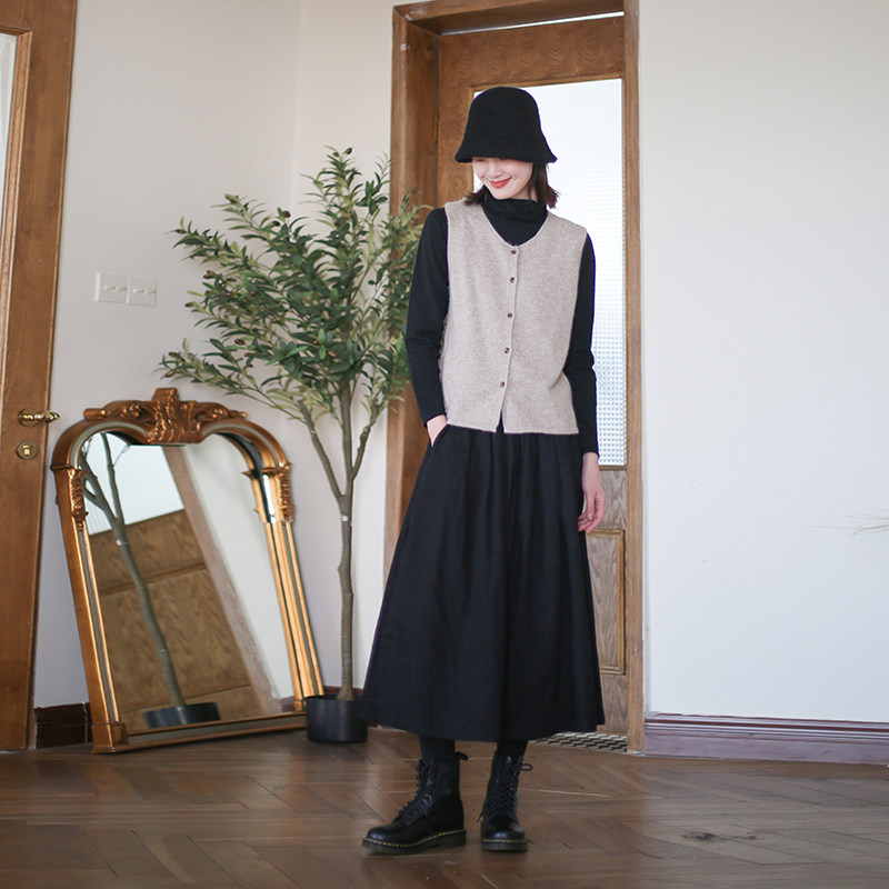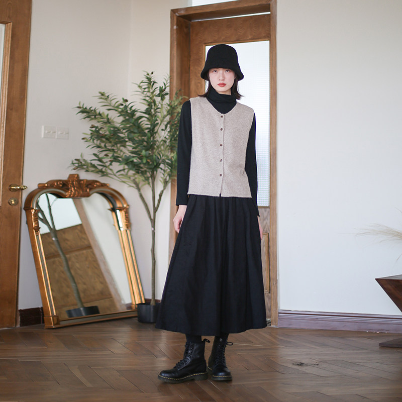 2025新款女裙子百搭棉麻半身裙 秋冬文艺a字裙中长款半裙半身长裙