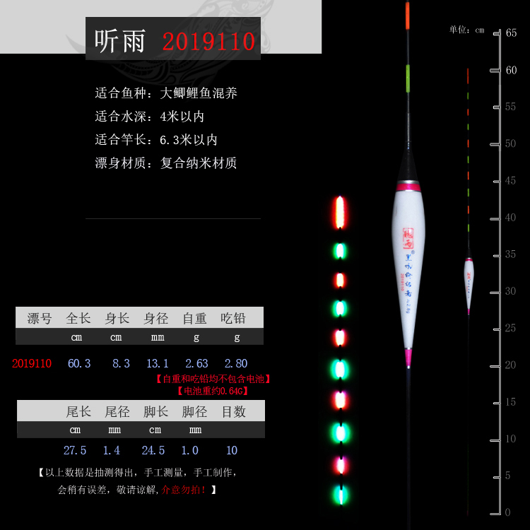 60CM日夜两用电子漂加长漂夜光漂鲤鱼漂鲫鱼漂夜钓青草鲢鳙翘嘴漂