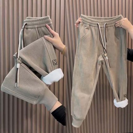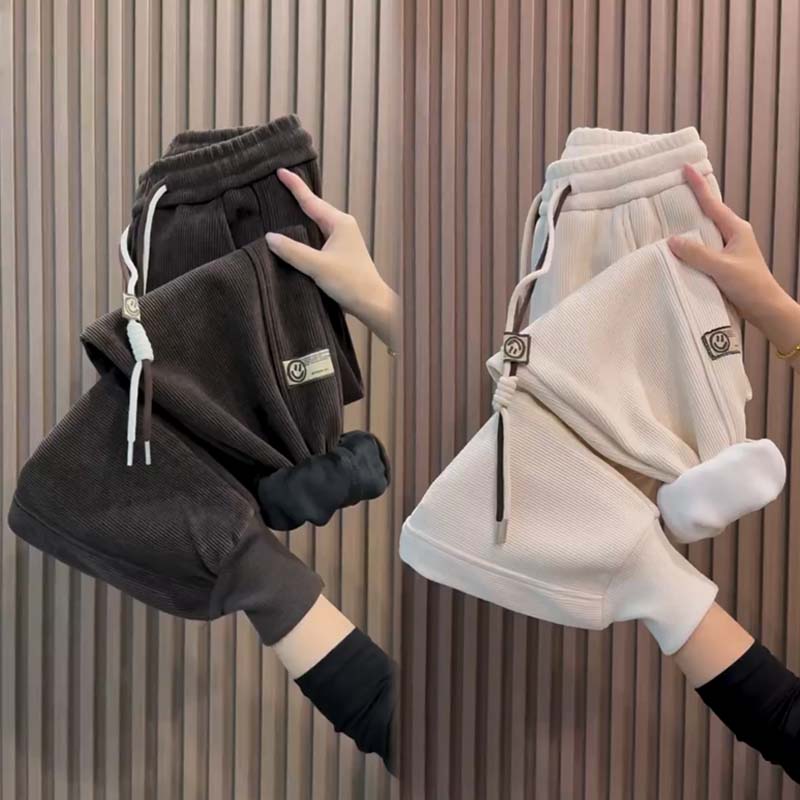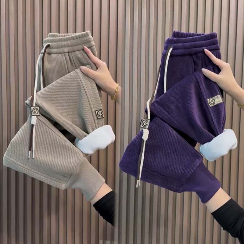 冬季新款加绒加厚卫裤女时尚百搭哈伦裤高腰显瘦休闲裤保暖运动裤